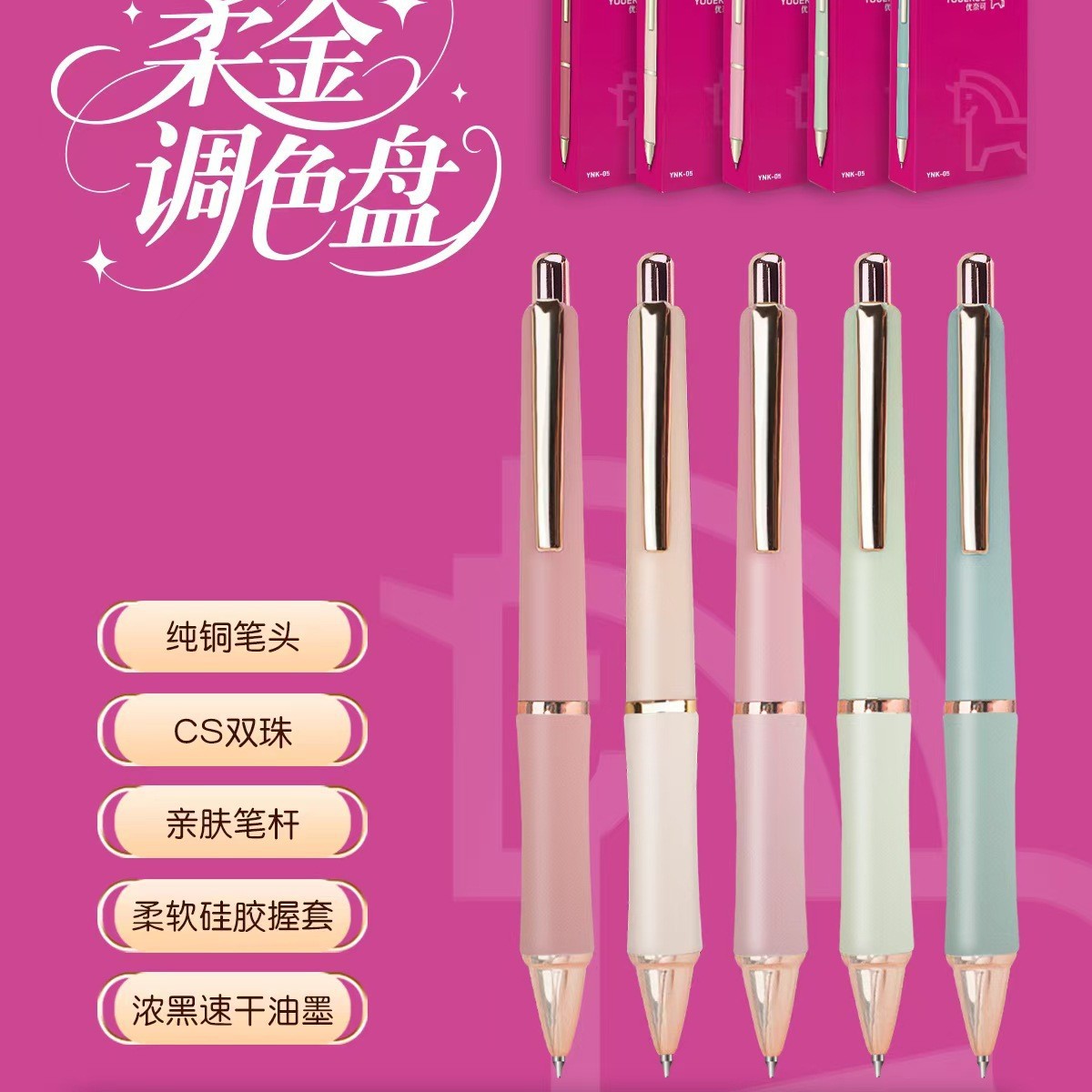 优奈可YNK-05柔金调色盘按动中性笔CS双珠柔软硅胶套速干顺滑0.5m