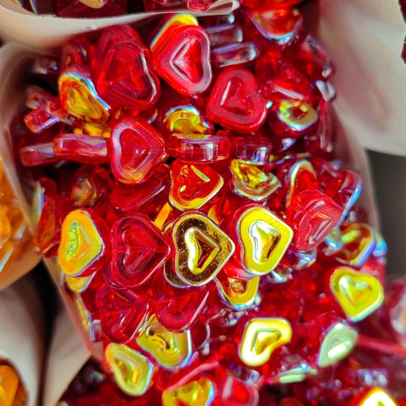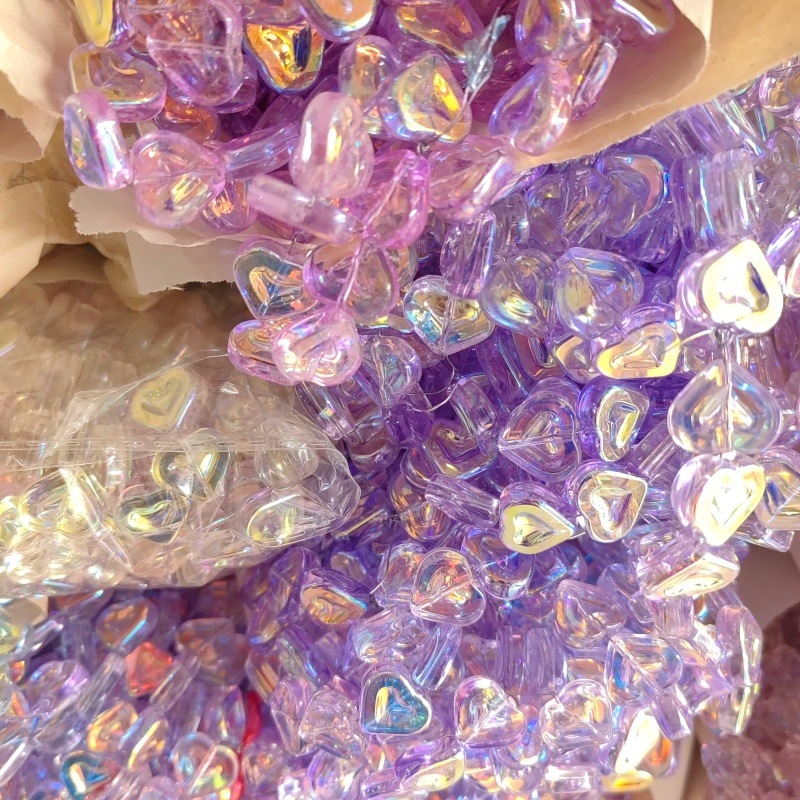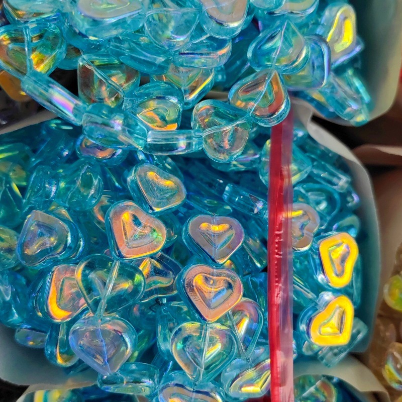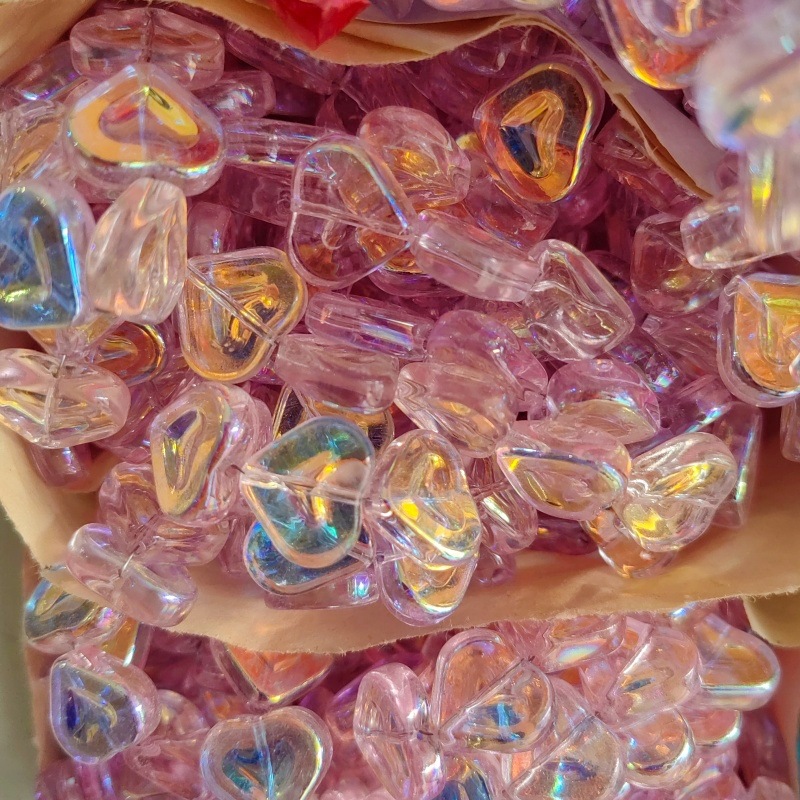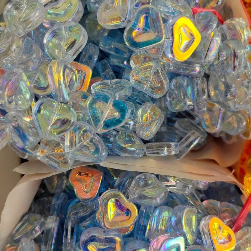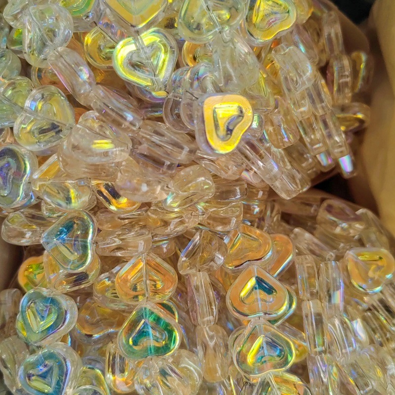 AB彩爱心玻璃直孔竖孔水晶桃心环散珠DIY手机链包链串珠饰品配件
