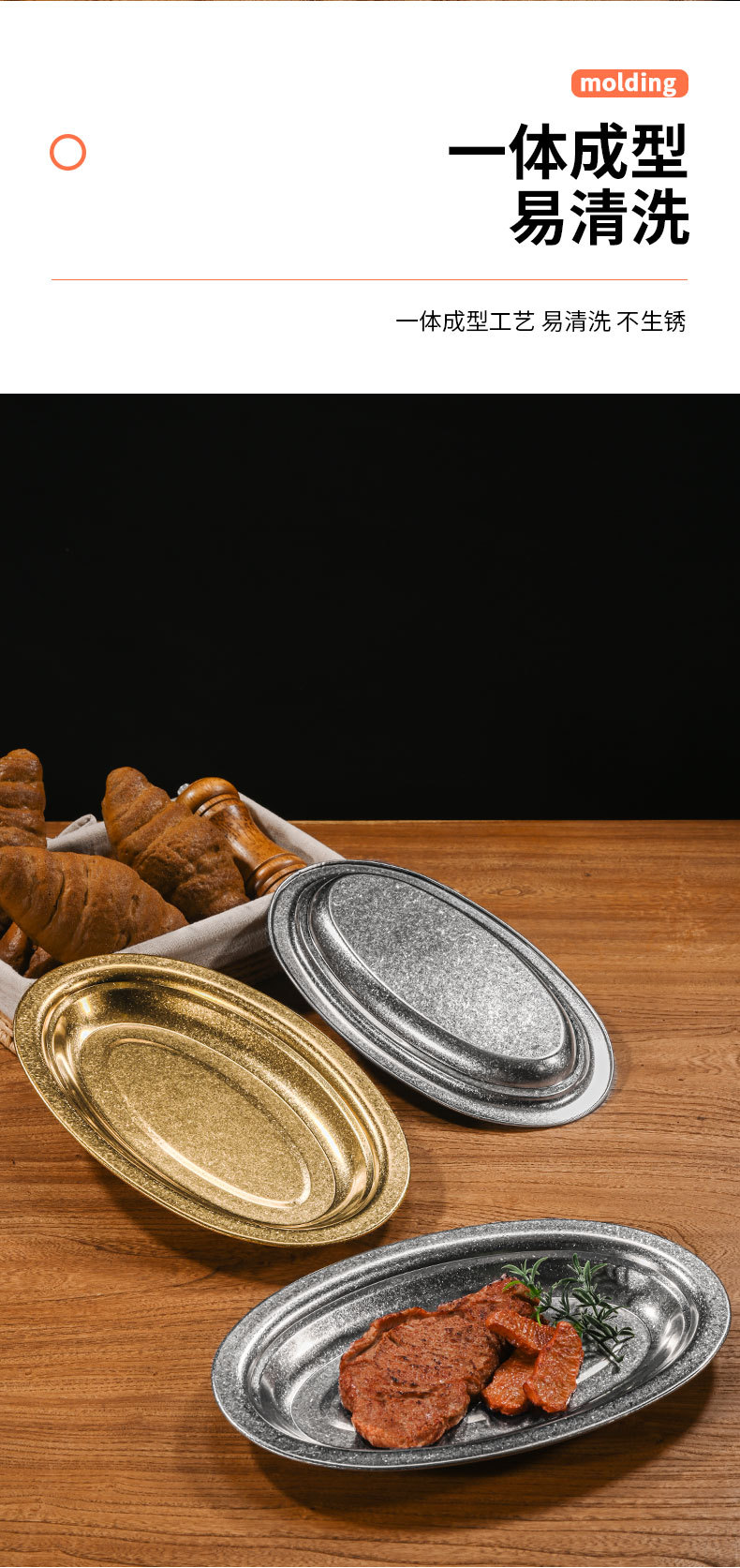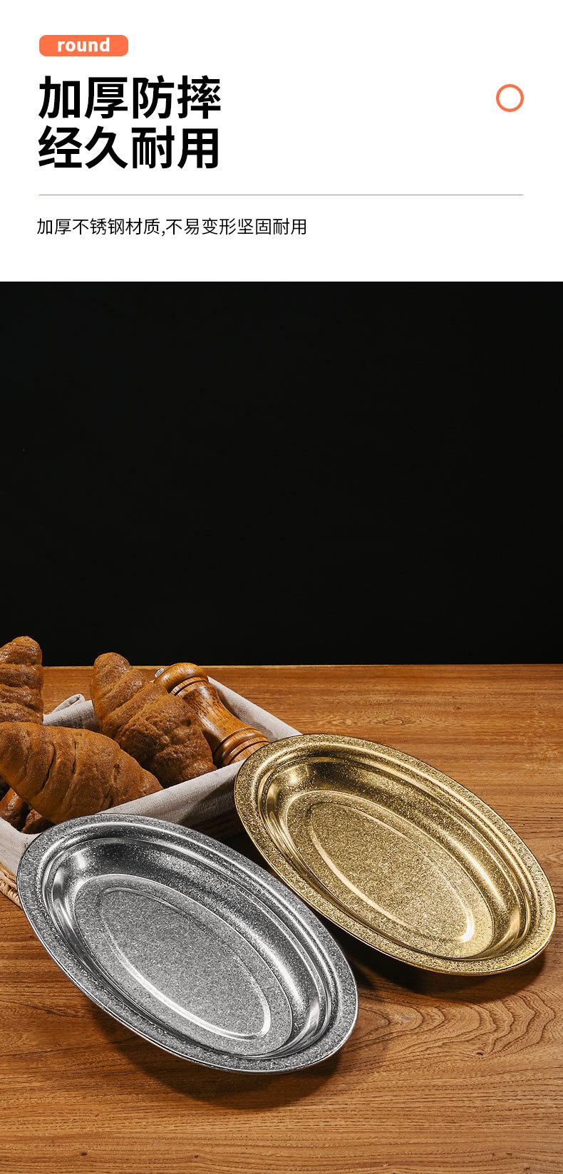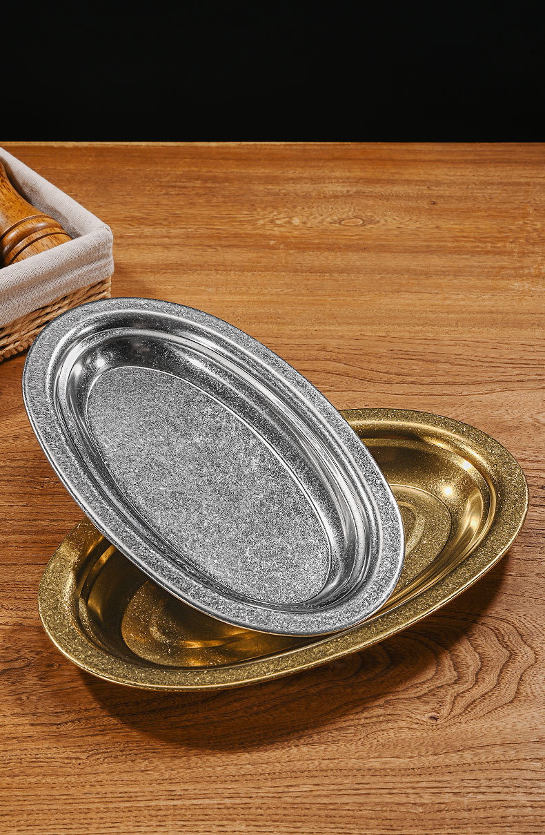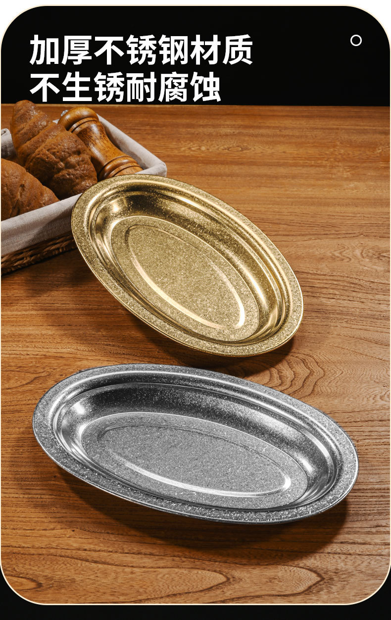 304ステンレス楕円皿金色焼き皿浅平厚い魚皿皿皿旦形トレーデザート皿