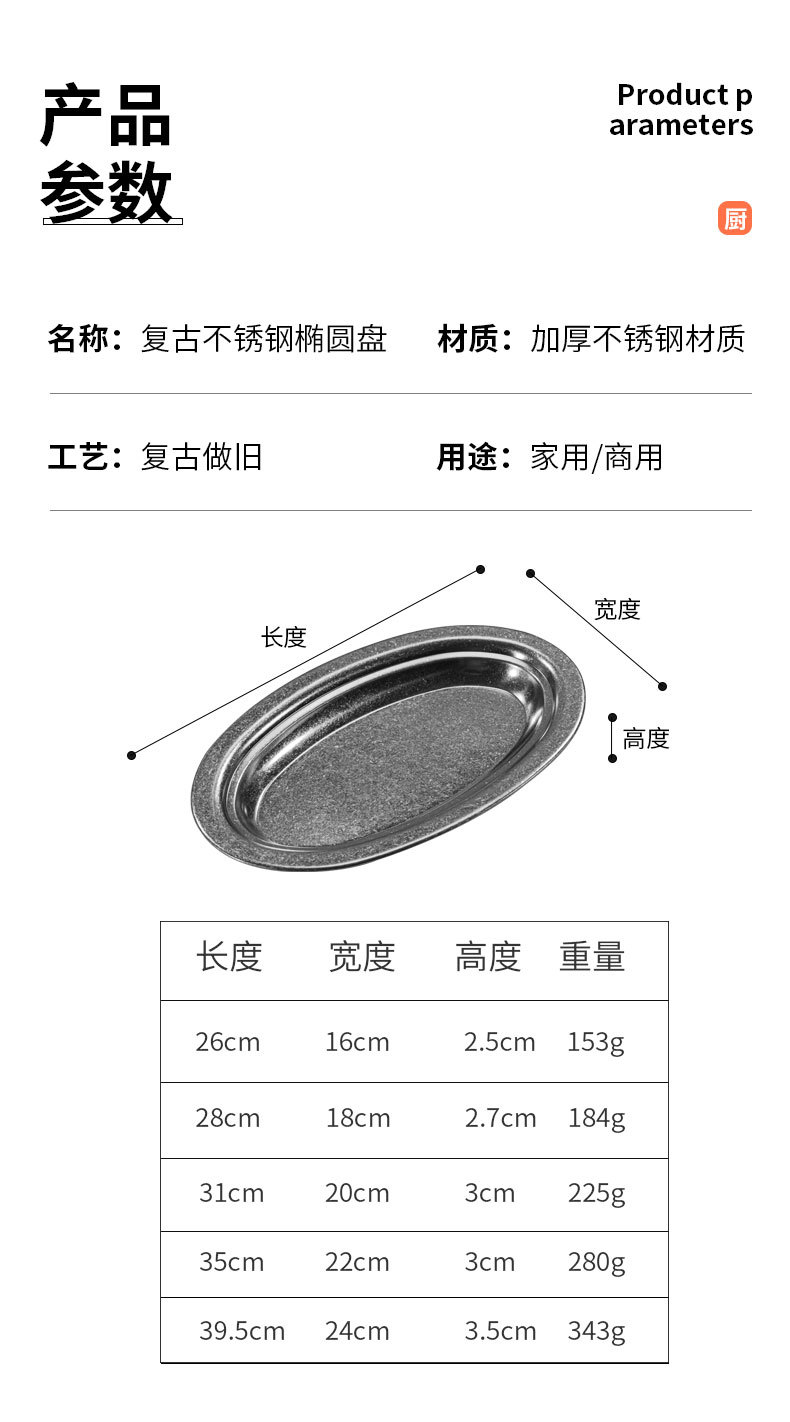 颜色 26cm椭圆盘(复古银),28cm椭圆盘(复古银),30cm椭圆盘(复古银),35cm椭圆盘(复古银),40cm椭圆盘(复古银),26cm椭圆盘(复古金),28cm椭圆盘(复古金),30cm椭圆盘(复古金),35cm椭圆盘(复古金),40cm椭圆盘(复古金)