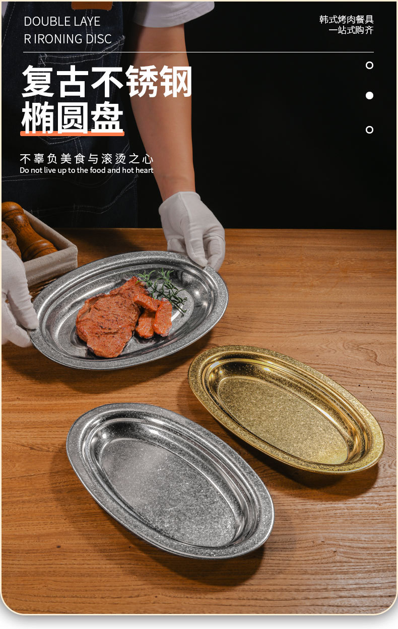 韓国ステンレス鋼楕円形プレート卵型厚みのある平底トレイゴールデン蒸し魚プレート野菜プレート商業バーベキュープレート食器