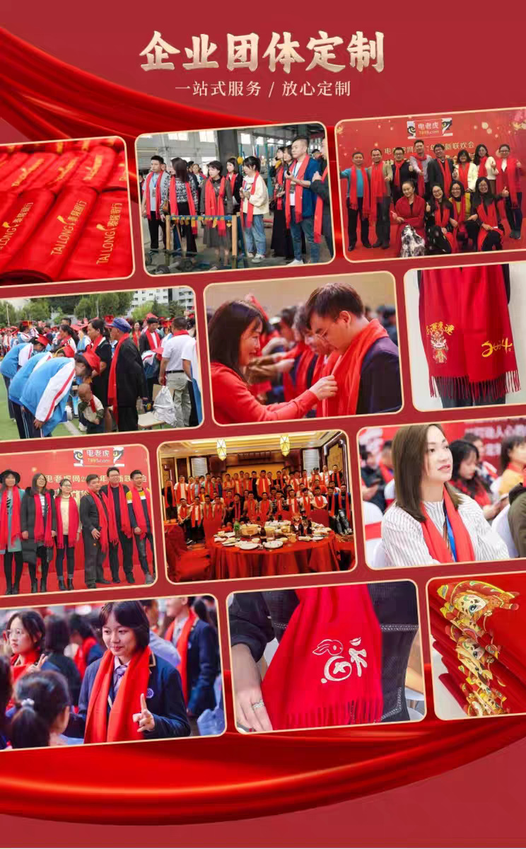 红围巾定制批发公司年会大红围巾印logo围巾刺绣中国风围巾厂家