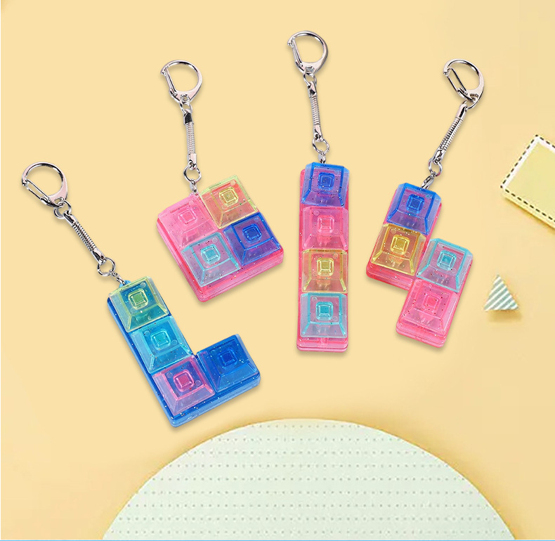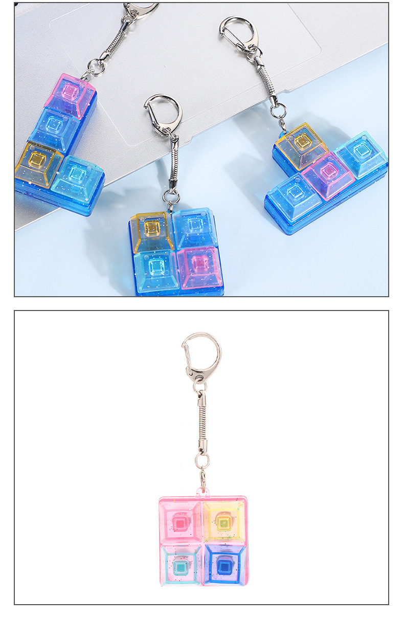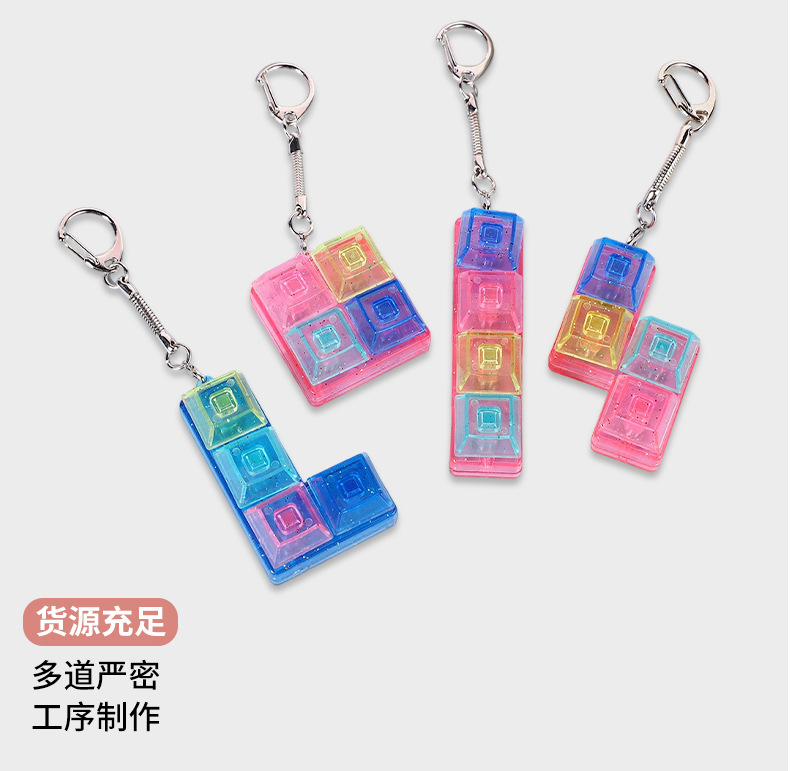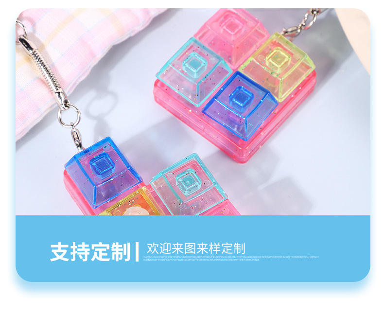 解压按键创意俄罗斯解压方块键盘小玩具挂件马卡龙解压键帽钥匙扣