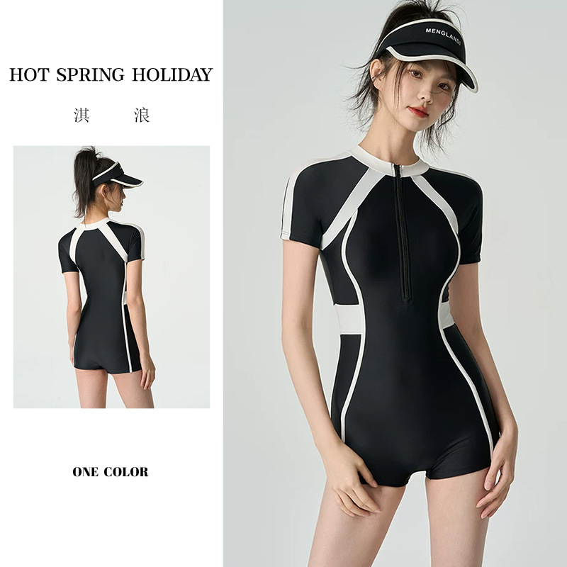 新款泳衣竞速专用连体保守拉链泳装女显瘦泳衣批发纯色一体式