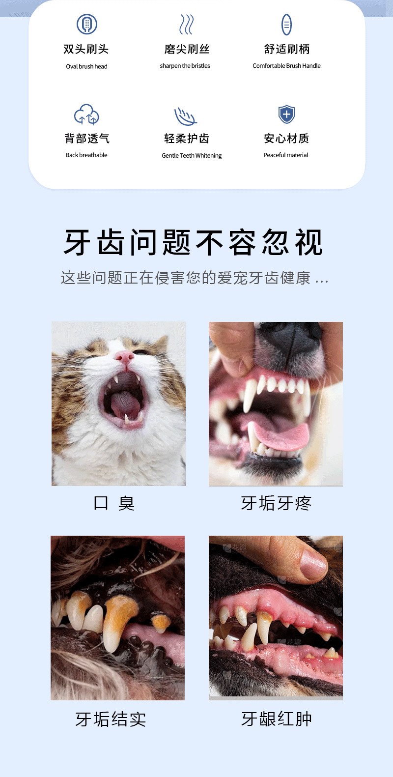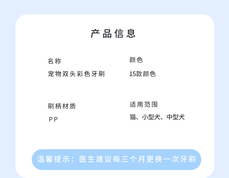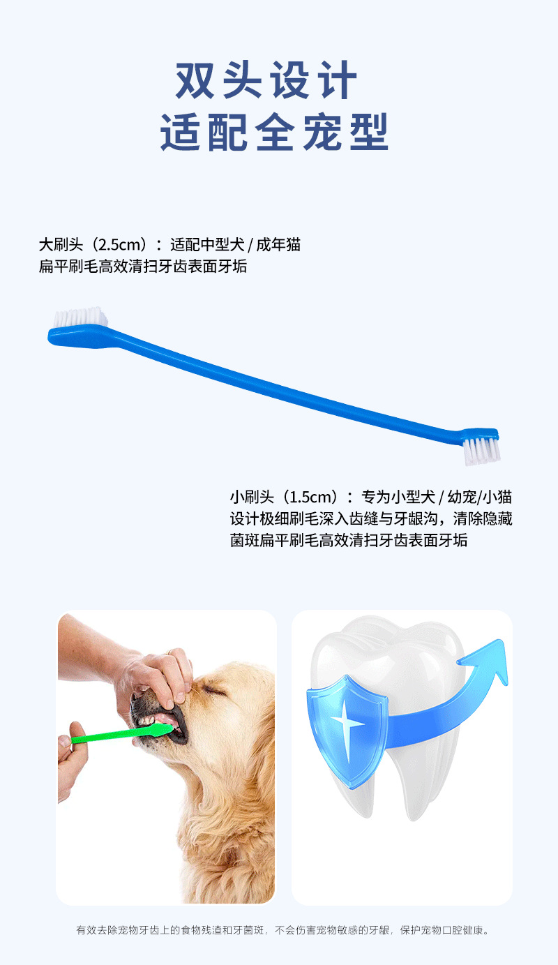 宠物彩色双头牙刷 清洁牙垢去除口臭 狗狗猫咪牙刷 宠物洁牙用品