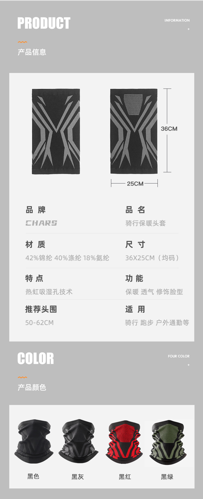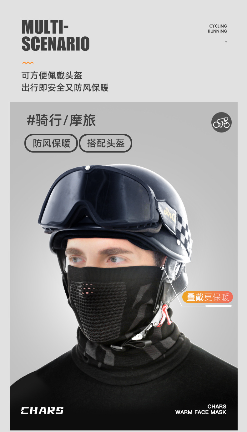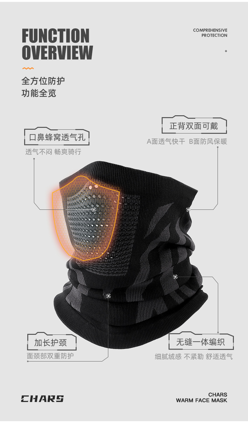 秋冬款骑行面罩男女同款户外滑雪骑行护颈围脖保暖登山多功能面罩