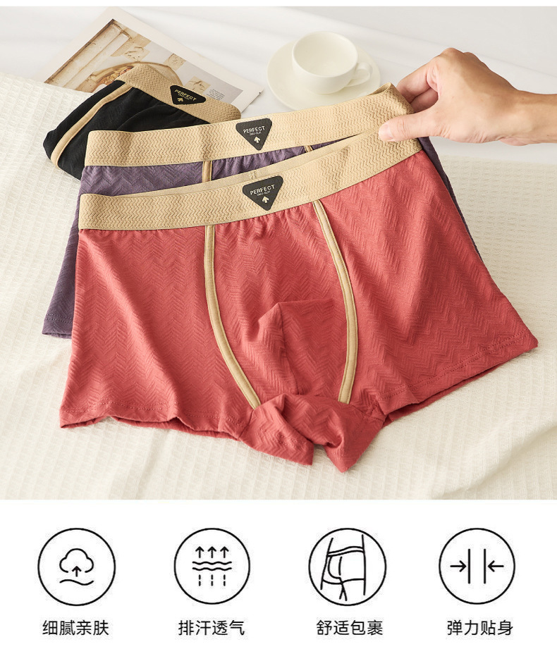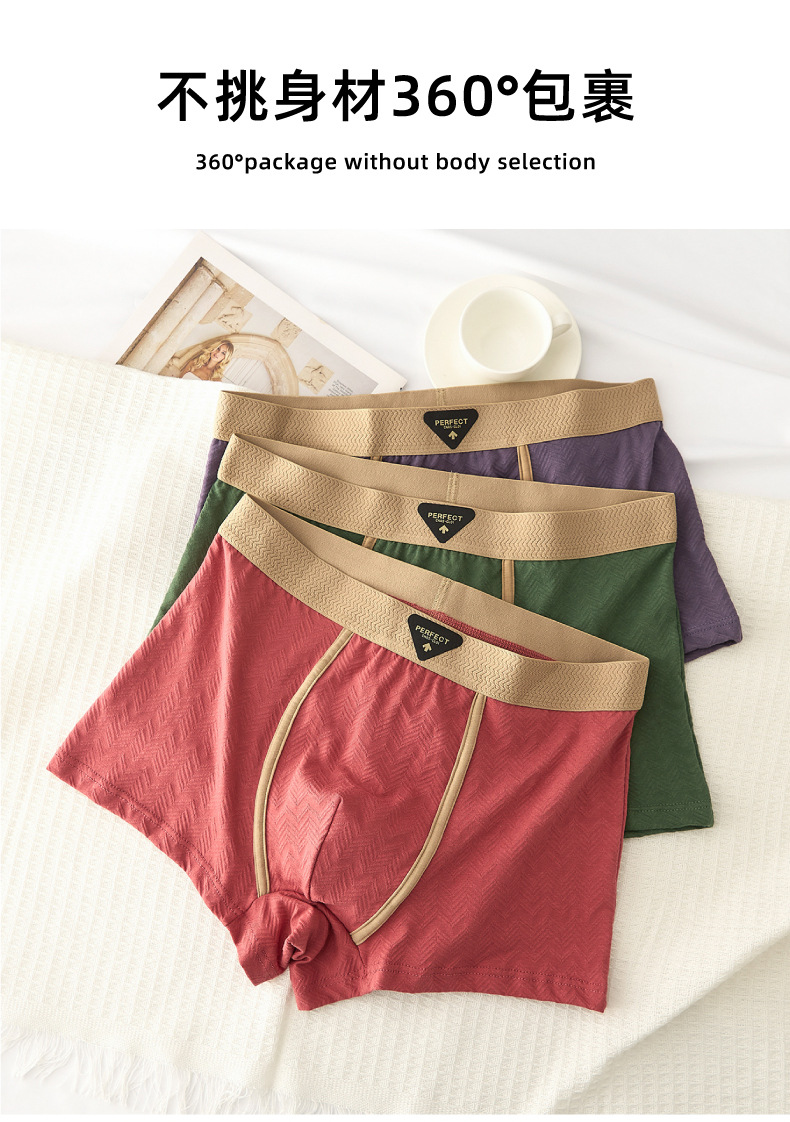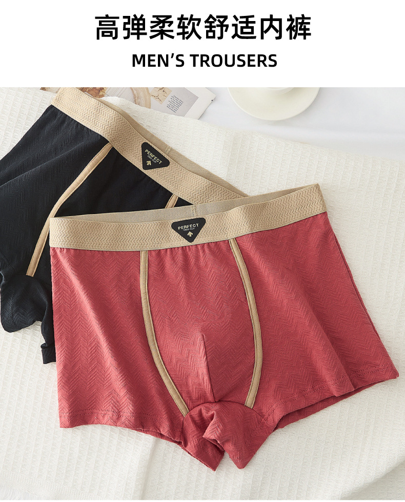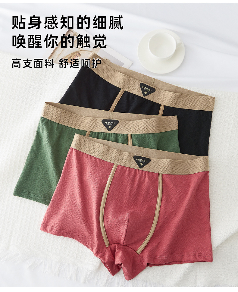 秋冬新款男士内裤纯棉裸感提花柔软内裤男洋气舒适透气平角裤头男