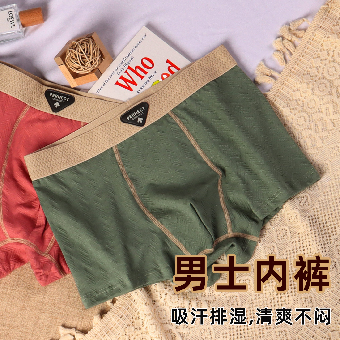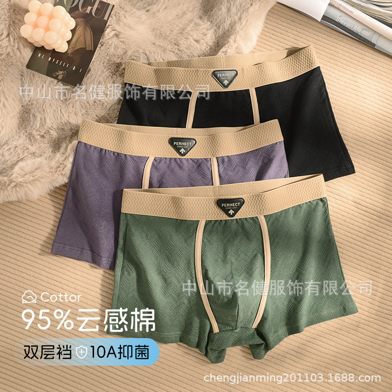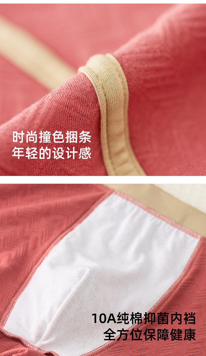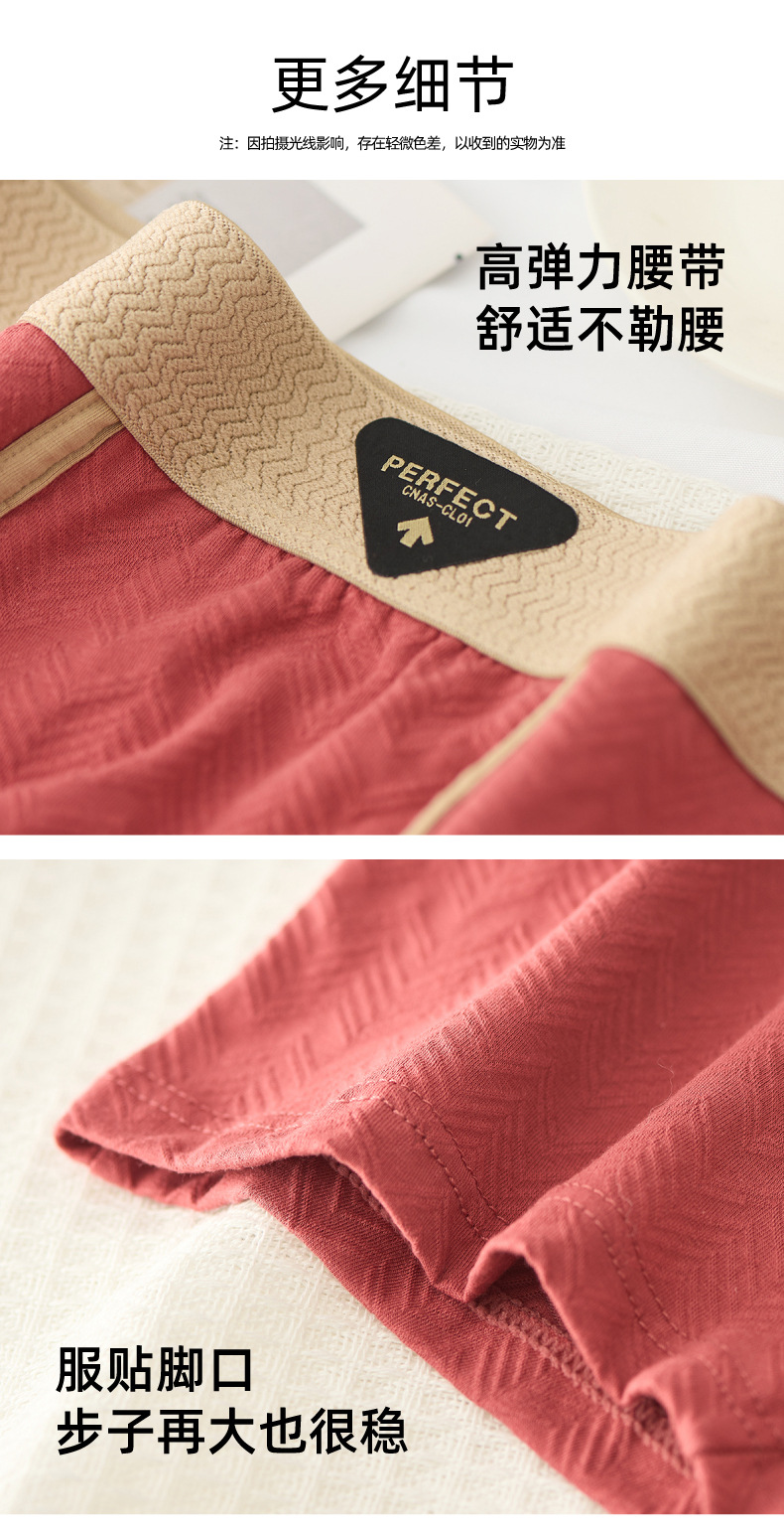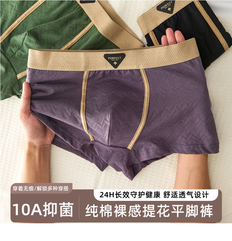 抖音爆款纯棉男士内裤一百棉抑菌内档舒适高档纹理棉质男士四角裤