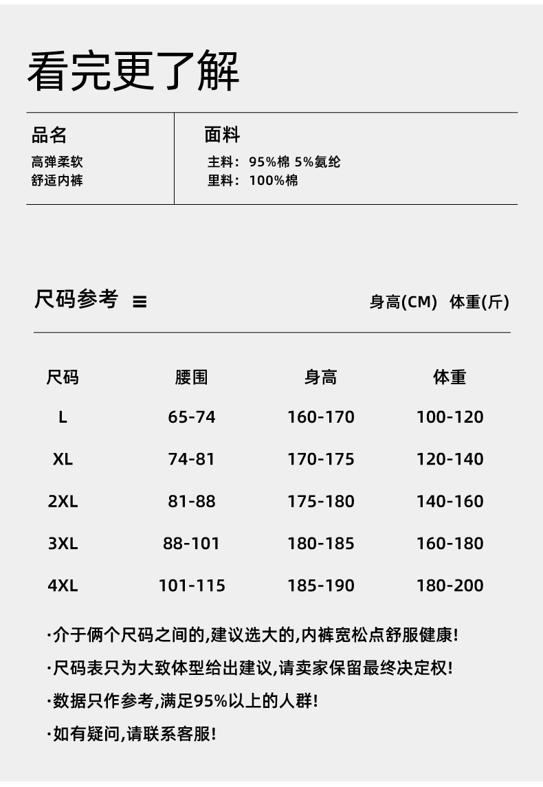 尺码 L 90-110斤,XL 110-130斤,2XL 130-150斤,3XL 150-170斤,4XL 170-190斤
