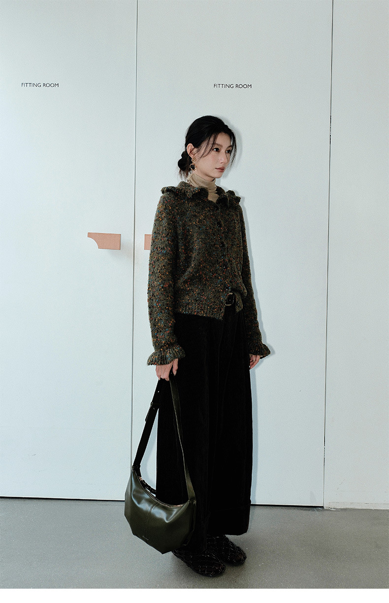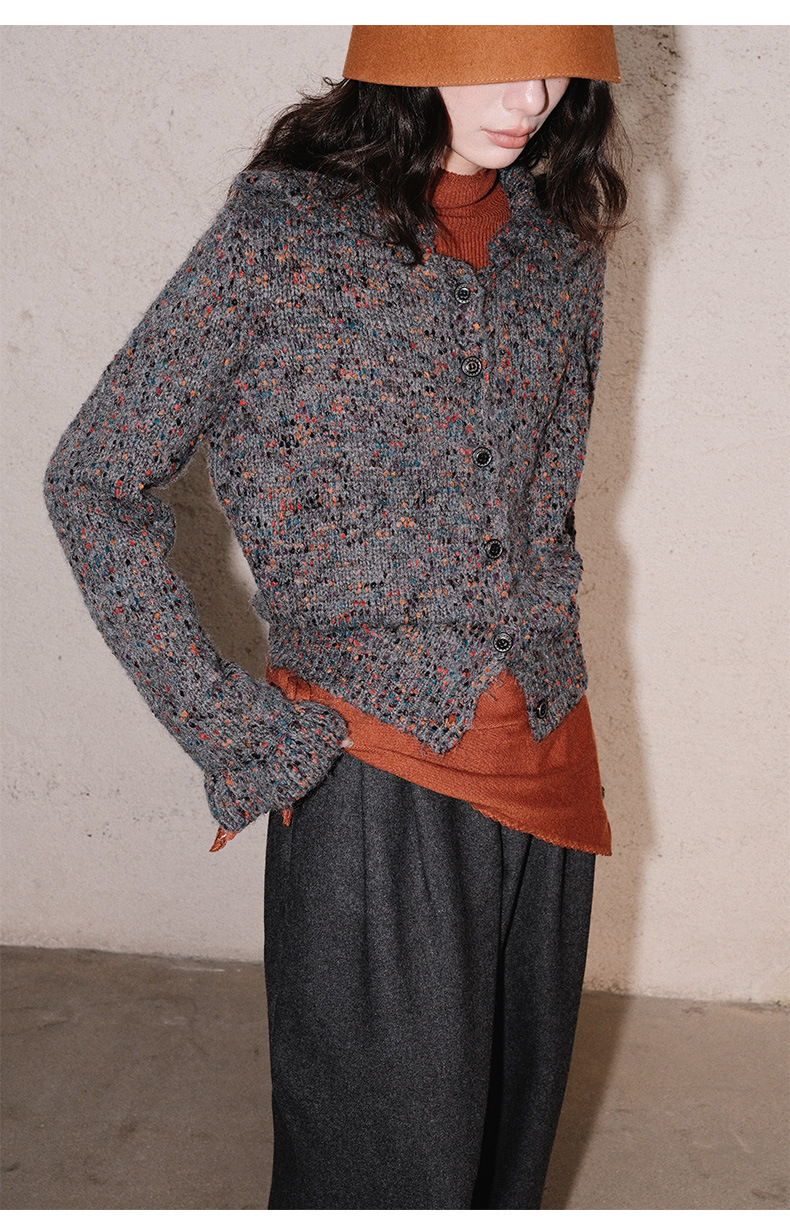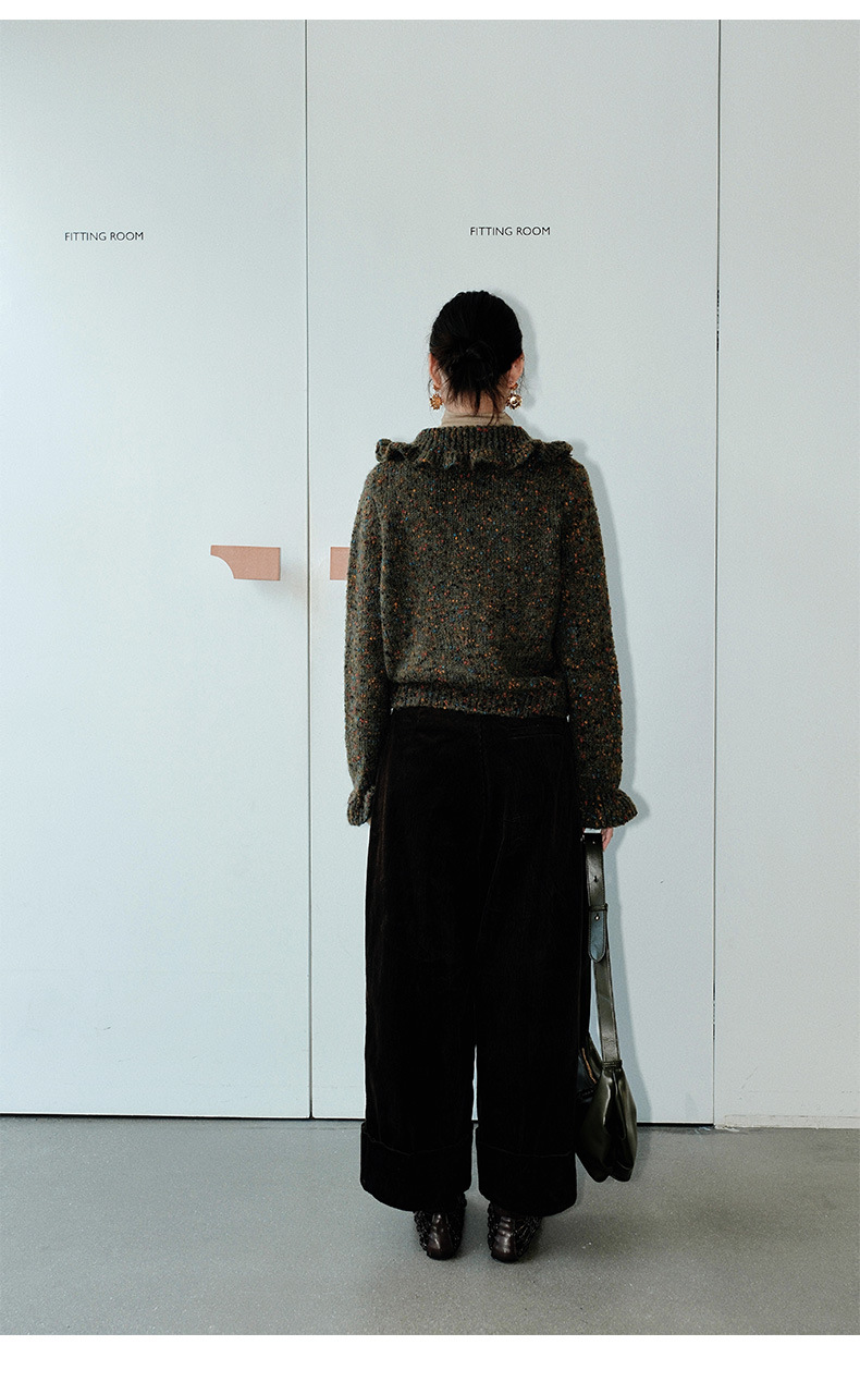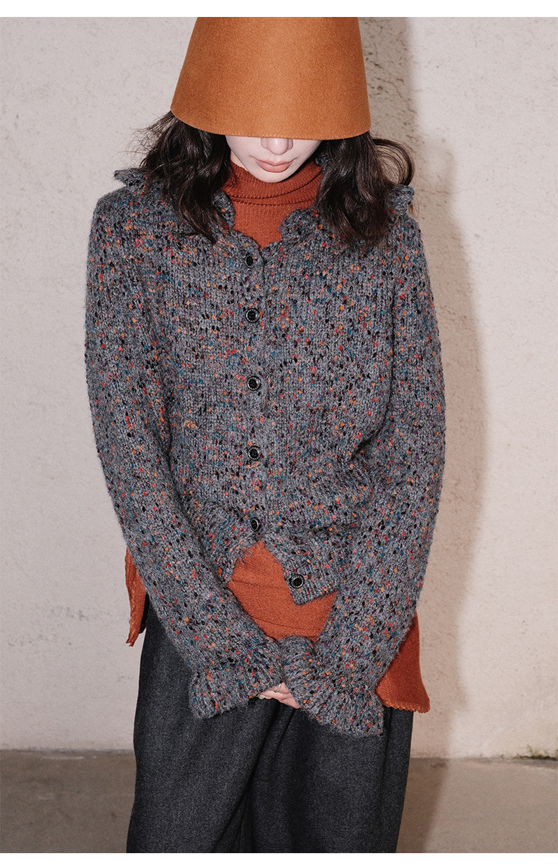 NEIHE内赫2025年复古花纱木耳边费尔岛毛衣开衫女秋冬新款257361