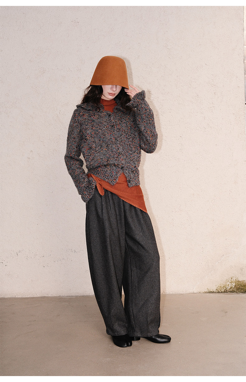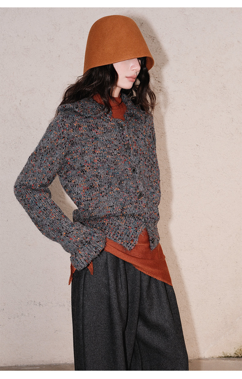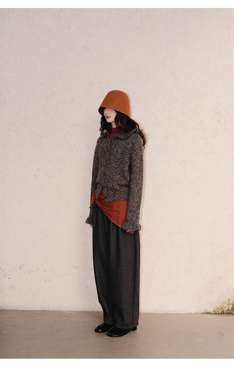 NEIHE内赫复古绞花撞色费尔岛毛衣开衫女秋冬季新款配围帽257369