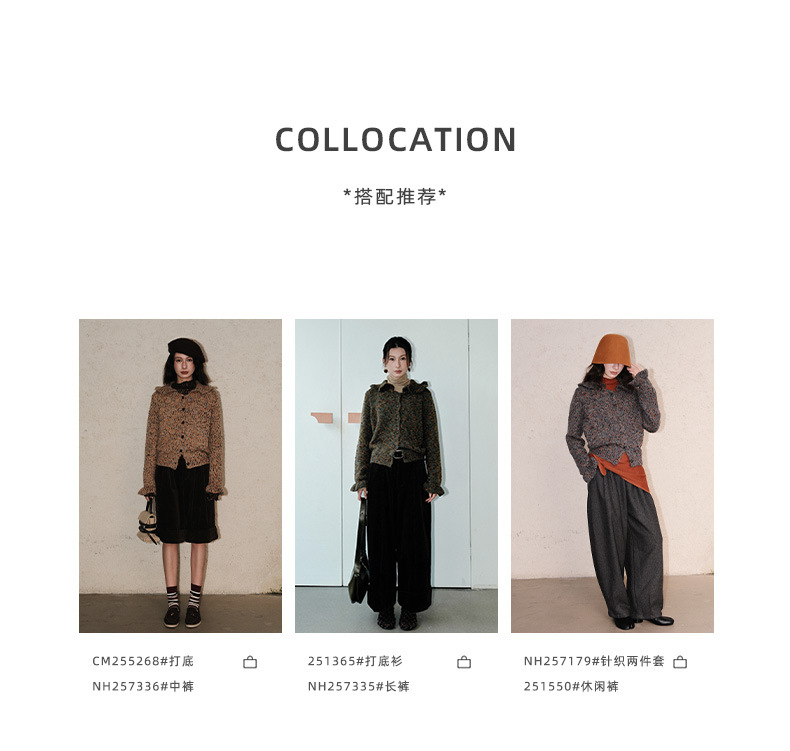 COMOS CMS 2025年蕾丝花边毛织开衫真两件套装毛衣女秋冬季255277