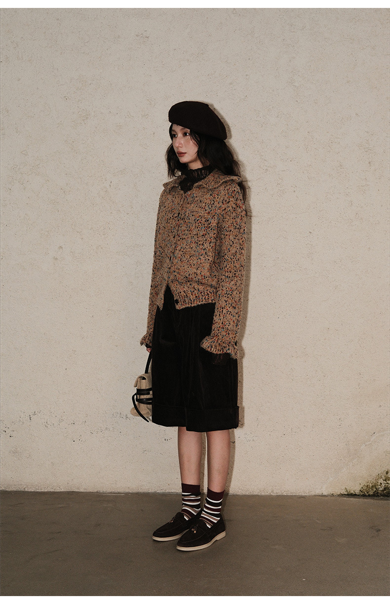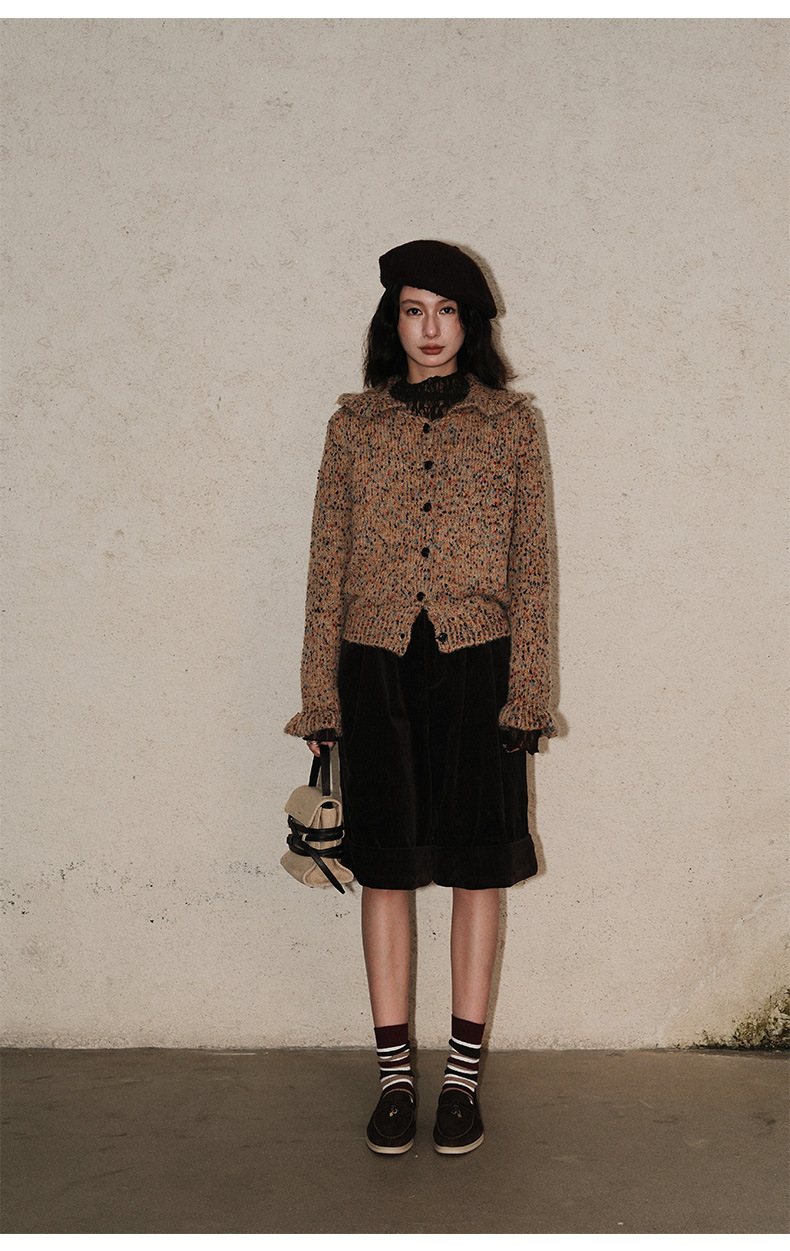 NEIHE内赫2025年复古花纱毛领针织开衫外套女冬季新款女装257226