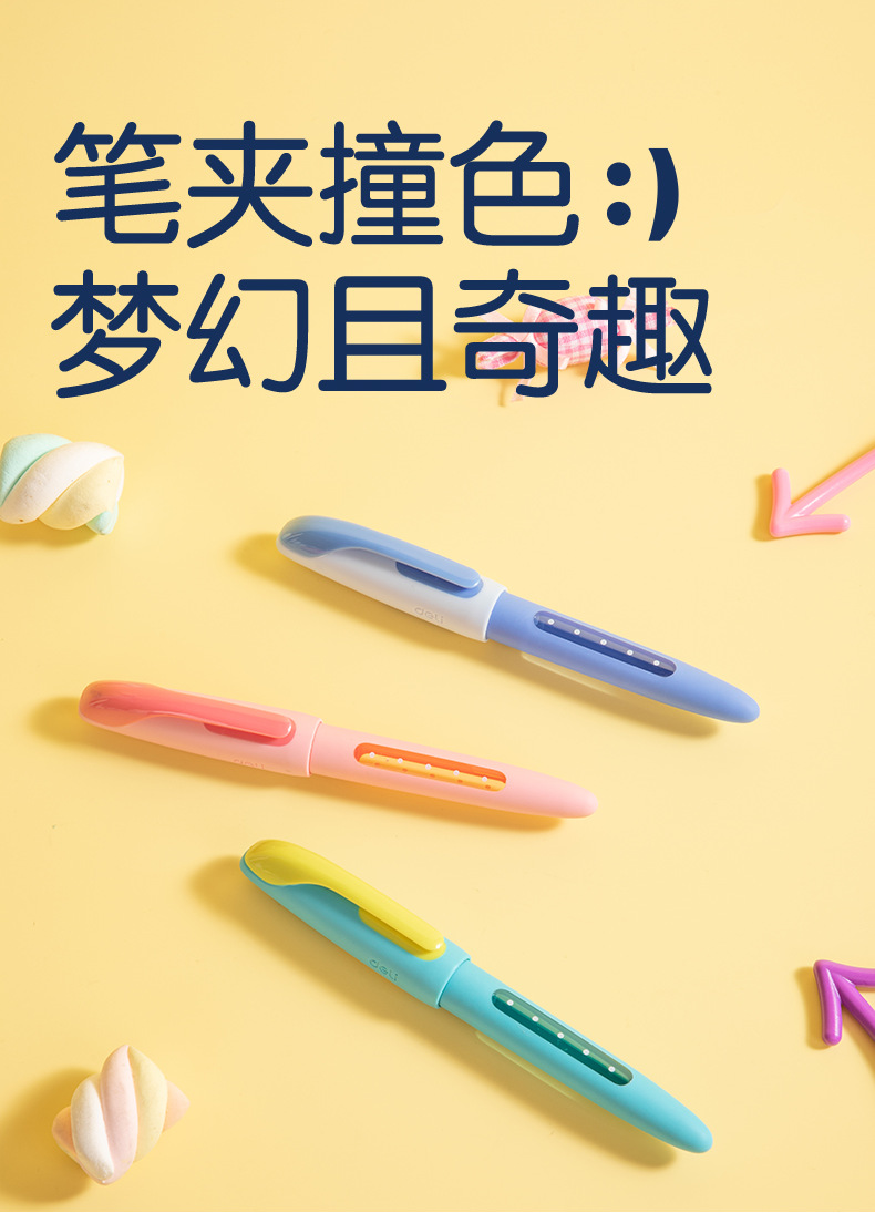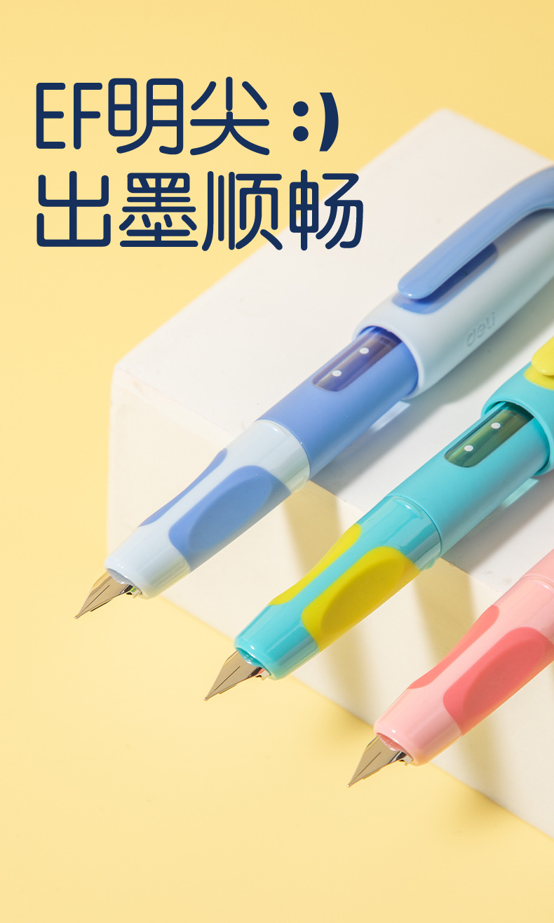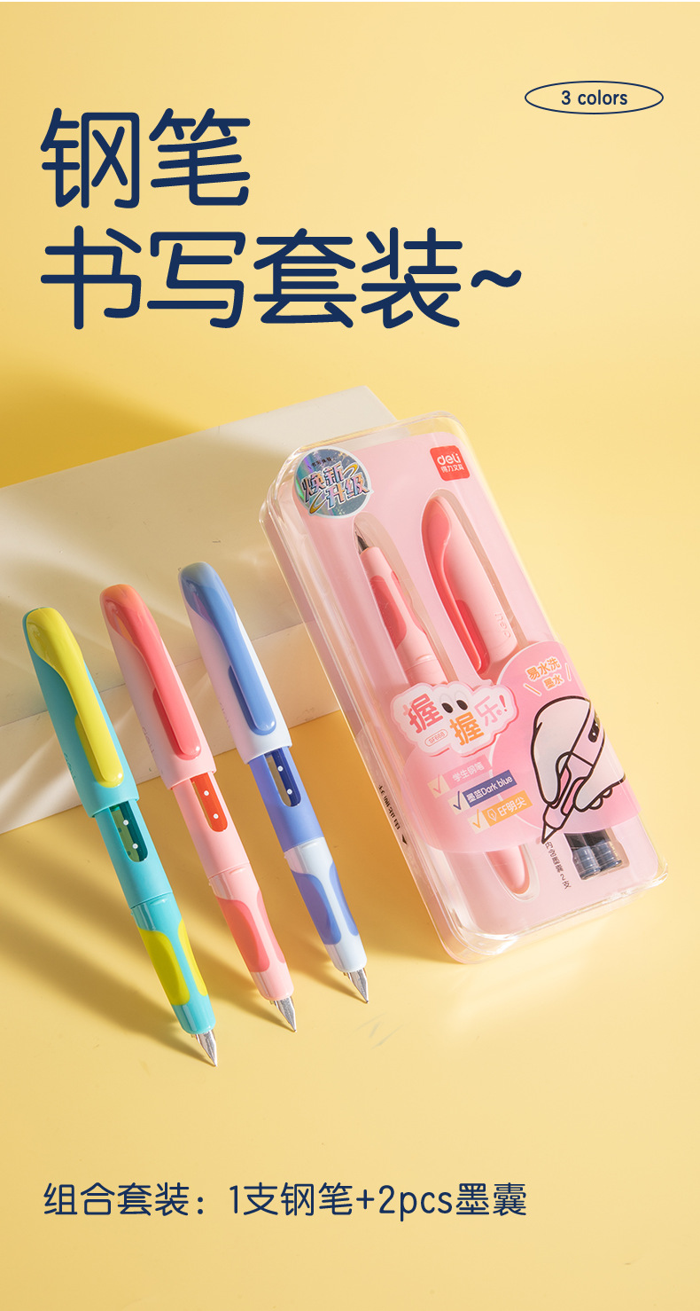 得力SF551奇趣撞色钢笔硅胶护套EF暗尖小学生优握练字墨水笔墨囊