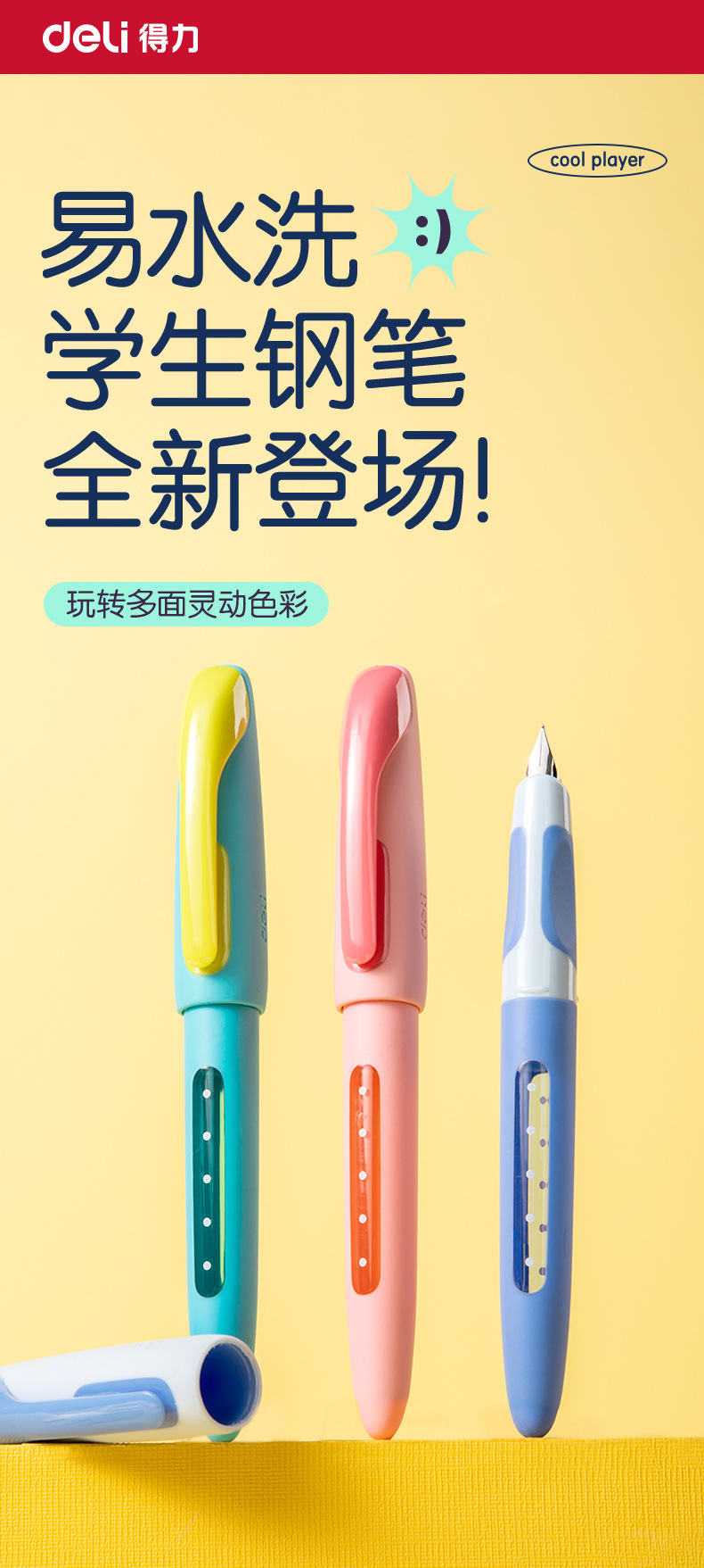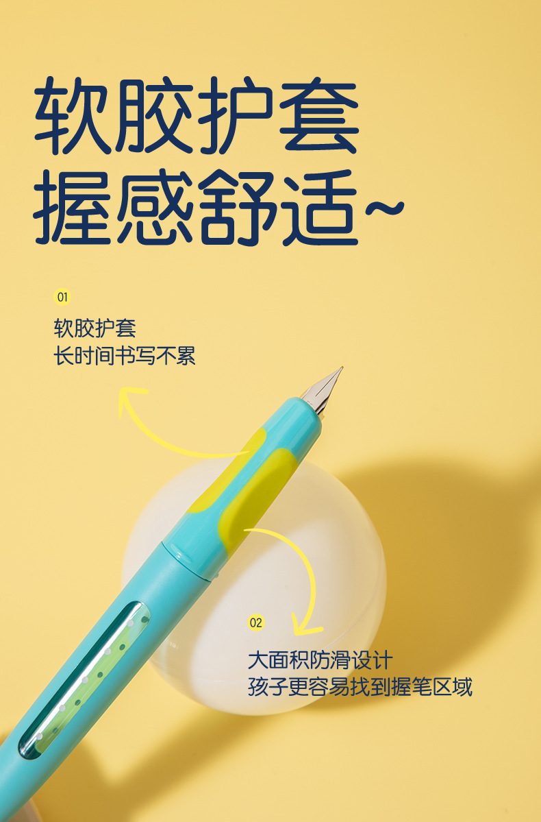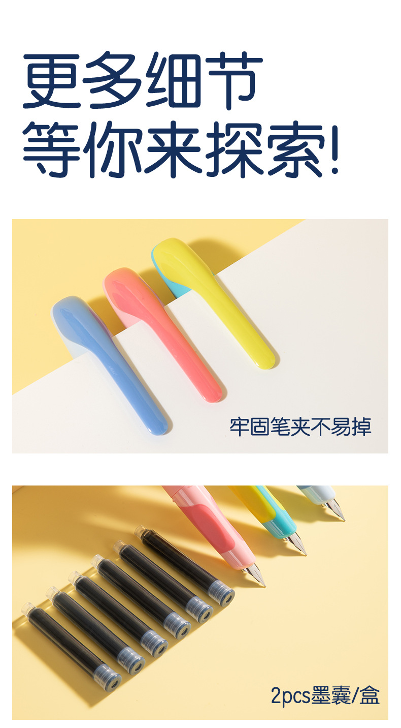 得力SF551奇趣撞色钢笔硅胶护套EF暗尖小学生优握练字墨水笔墨囊