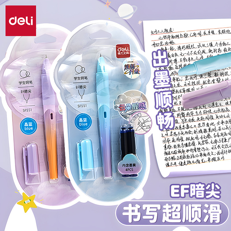 得力SF551学生钢笔EF暗尖可换墨囊学生用三年级速干顺滑好写钢笔