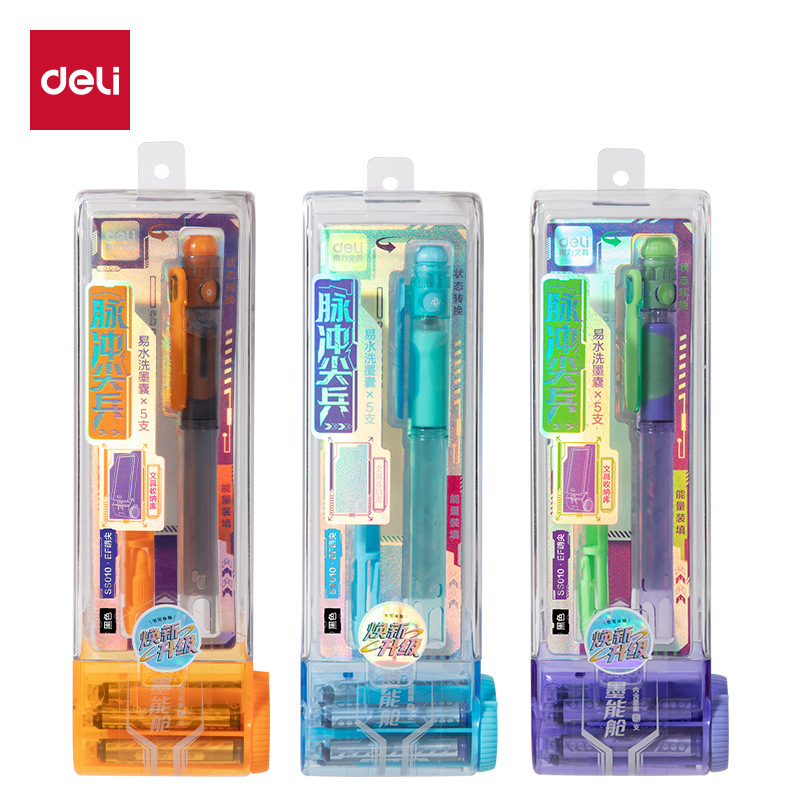 得力SS010六边形战士脉冲尖兵易水洗钢笔EF明尖三色可选架装钢笔