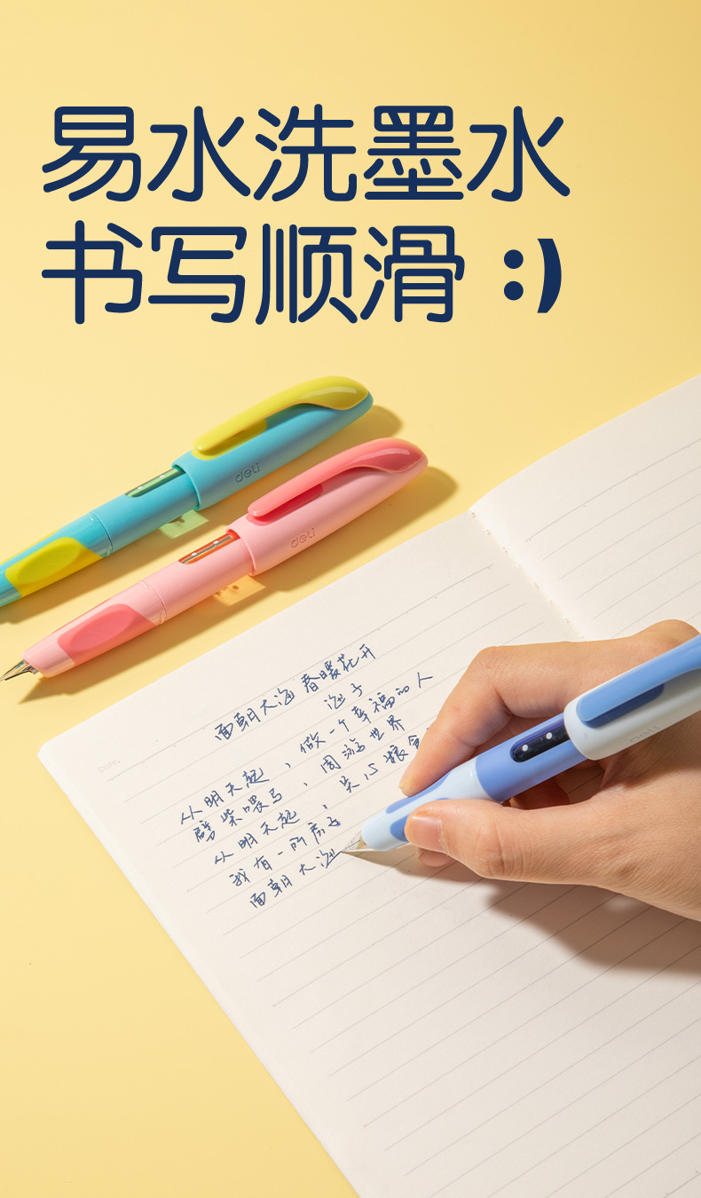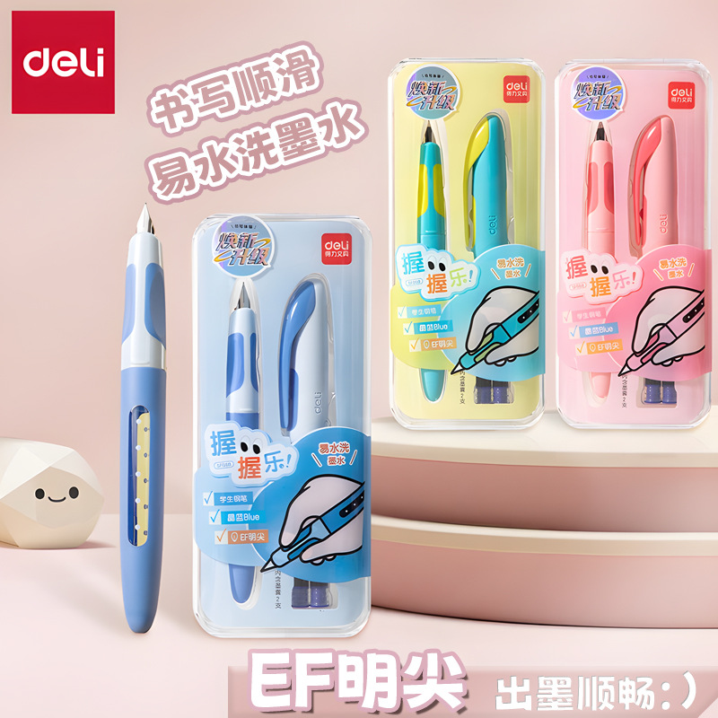 得力易水洗学生练字钢笔EF明尖可换墨囊小学生初学练习钢笔正姿笔