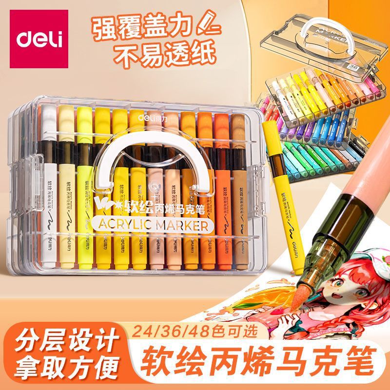得力HM127层叠盒直液式丙烯马克笔软头可叠色水洗水彩笔涂色画画