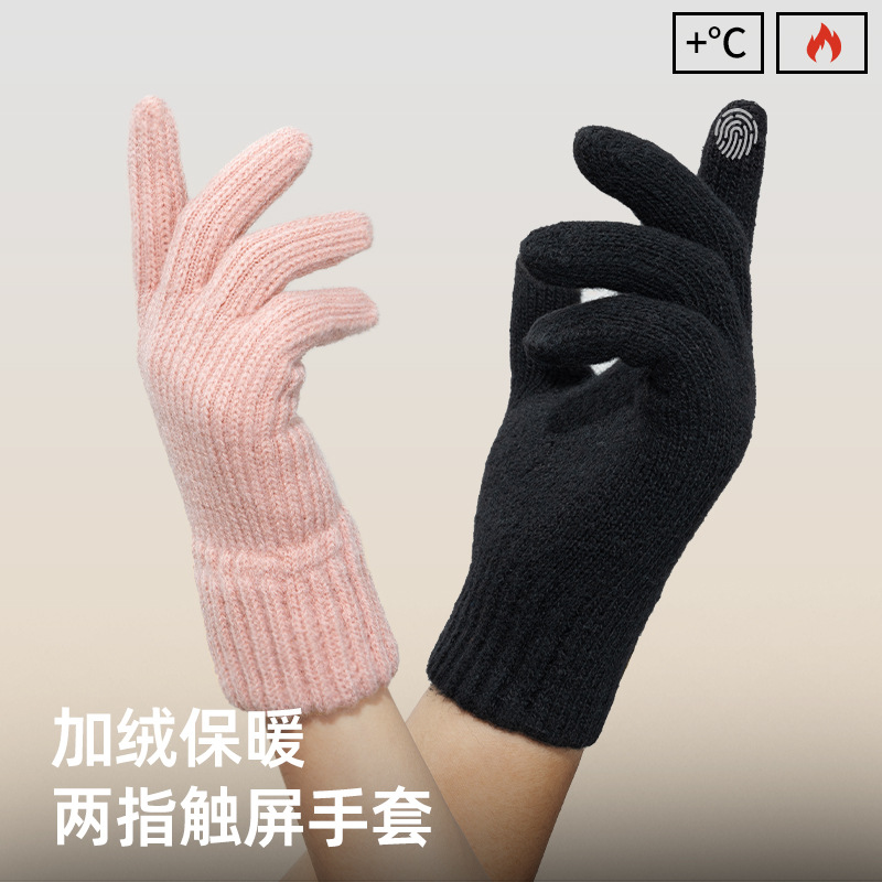 触屏手套冬季防寒保暖加绒针织手套户外骑行开车防风触屏毛线手套