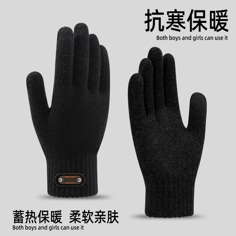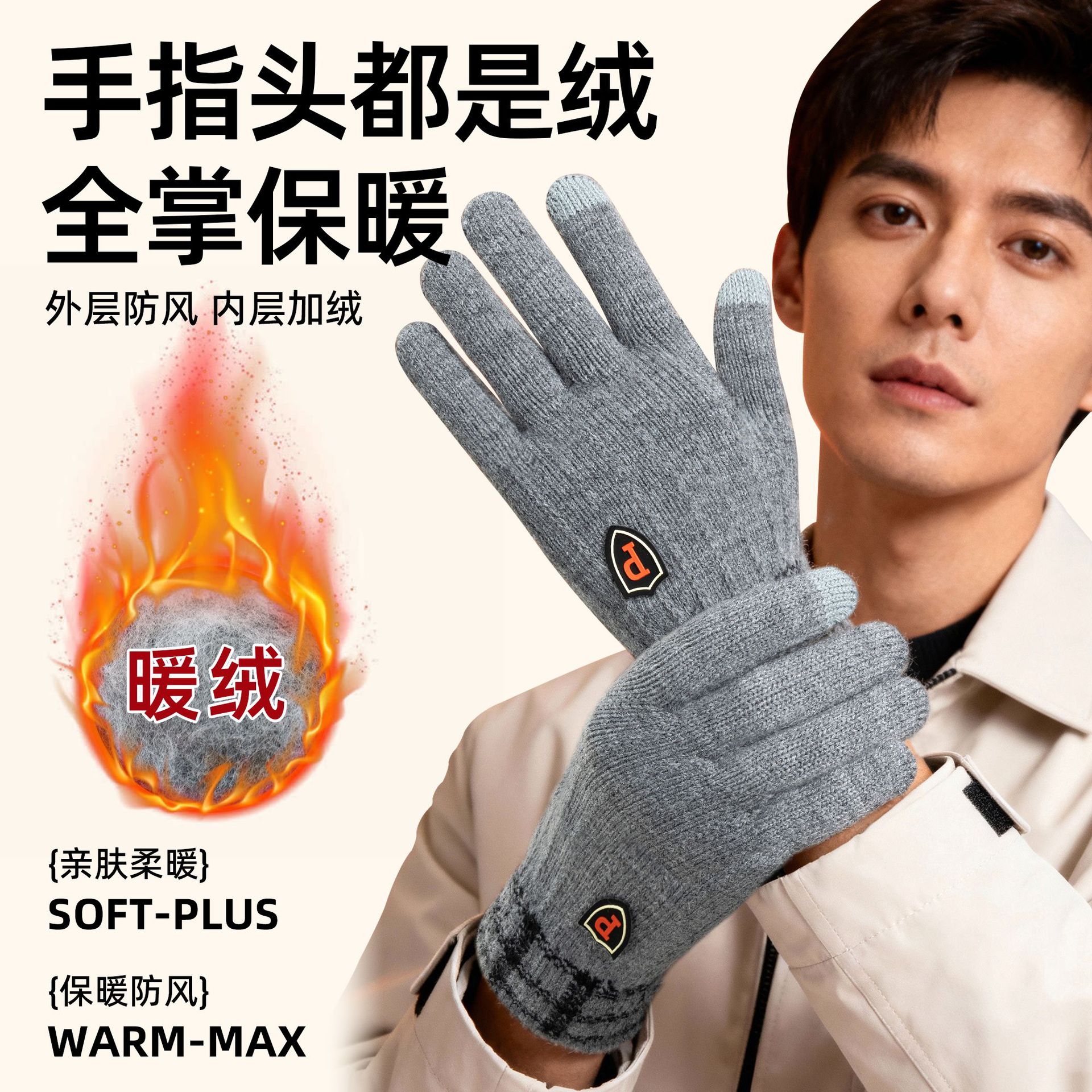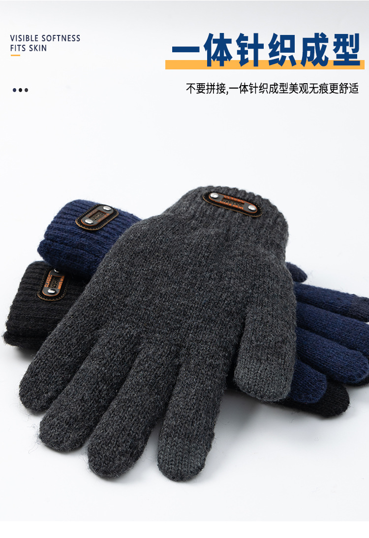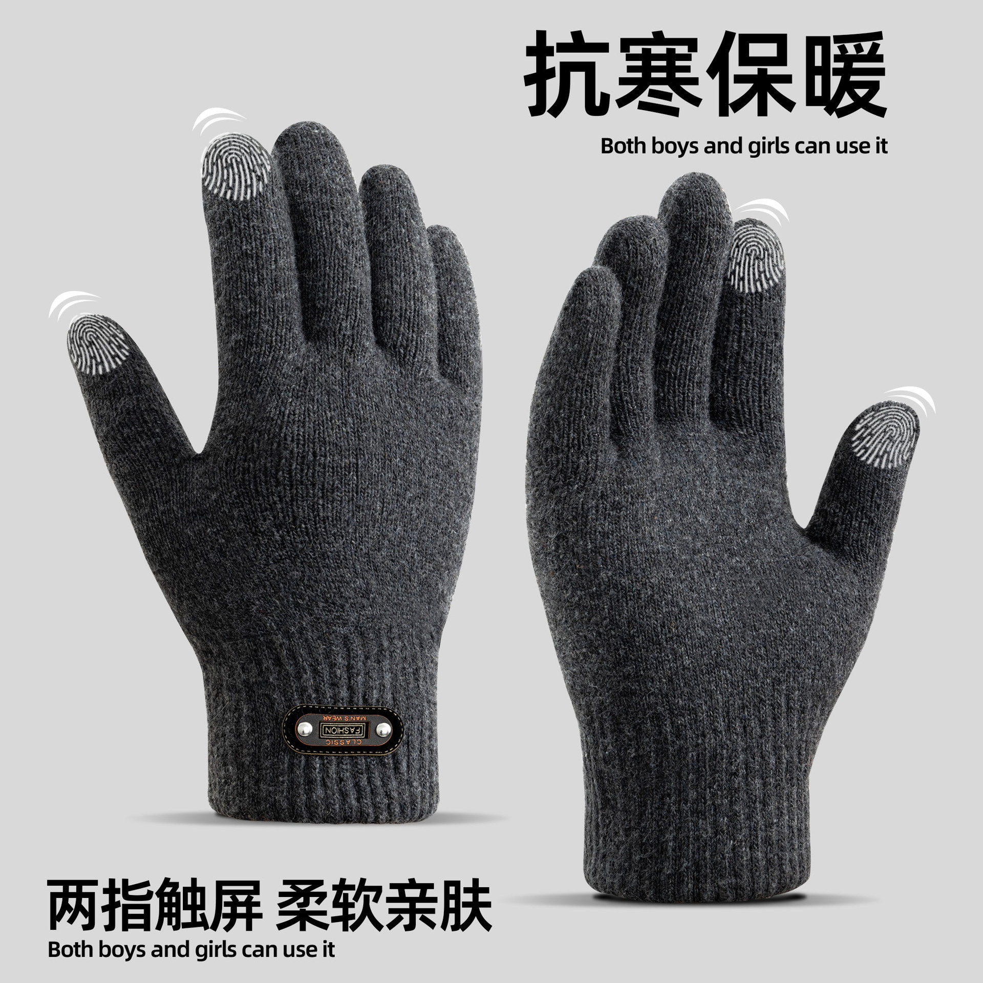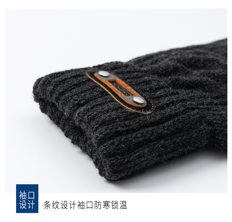 男士冬季骑车防寒毛线双层加厚加绒冬天学生保暖骑行简约触屏手套