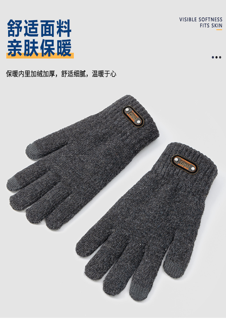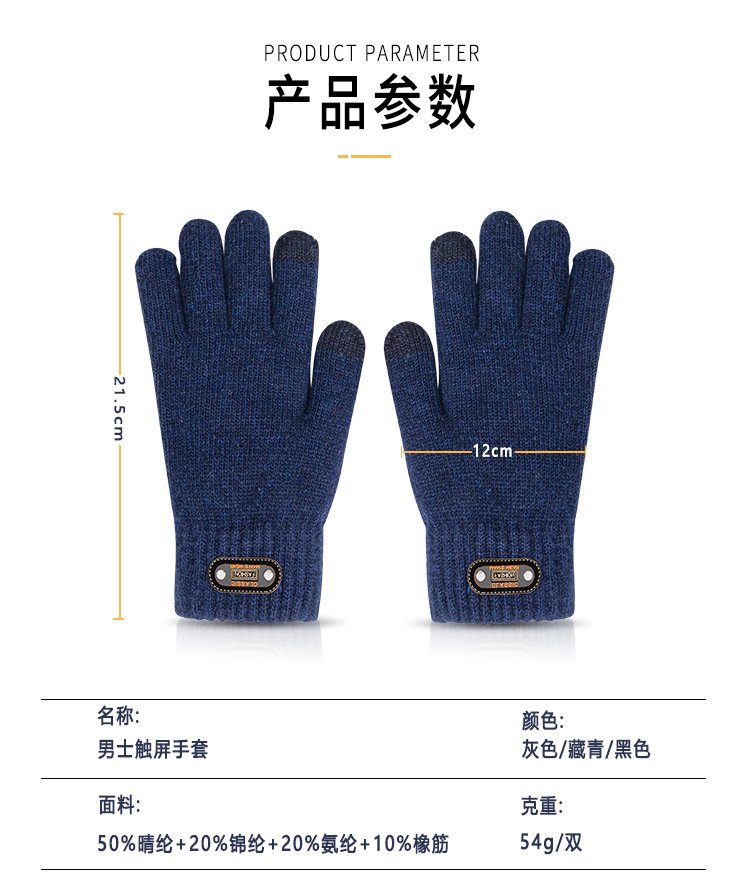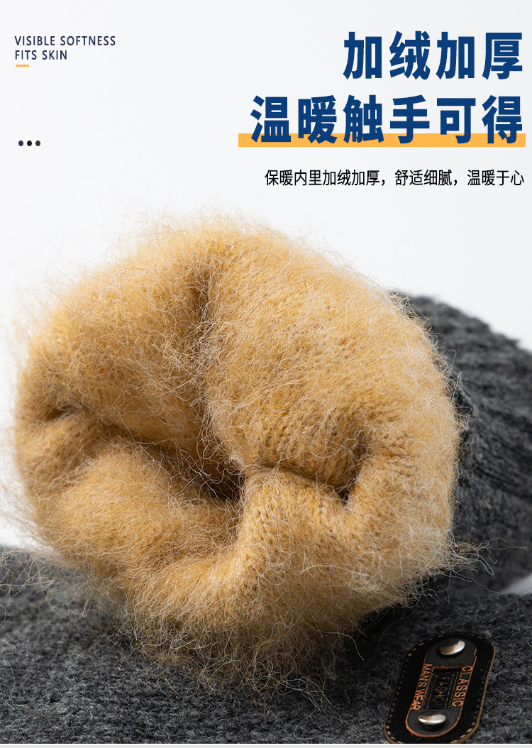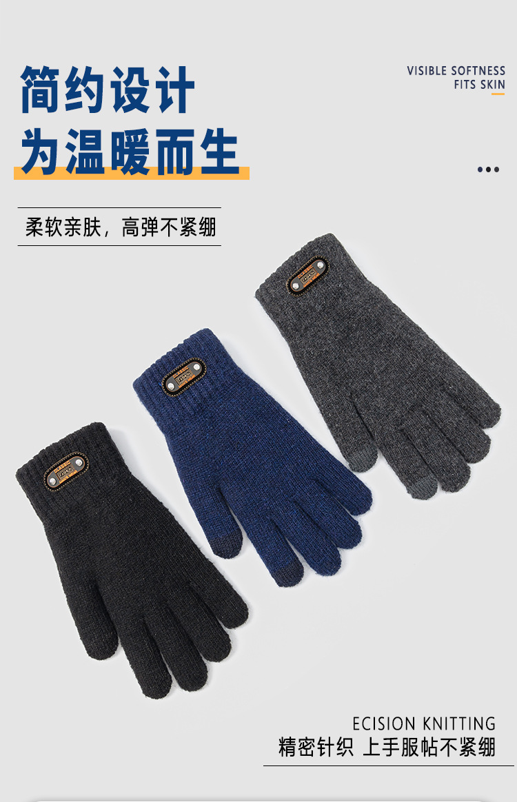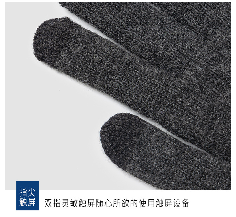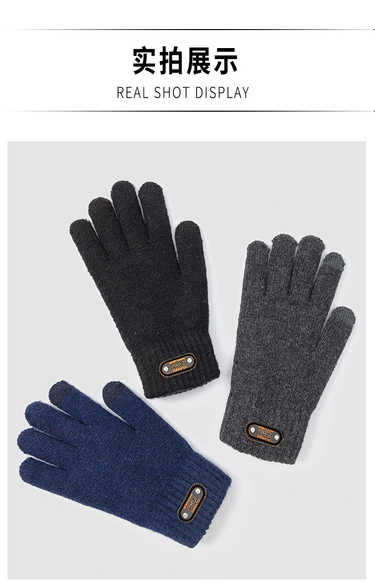 男士冬季骑车防寒毛线双层加厚加绒冬天学生保暖骑行简约触屏手套