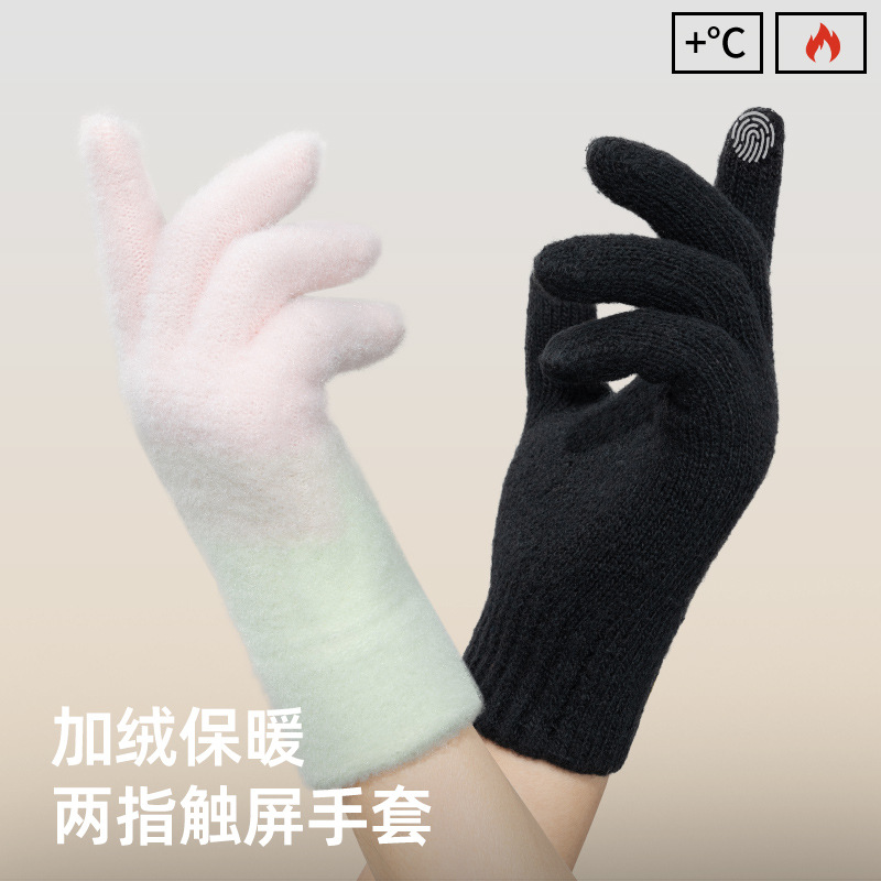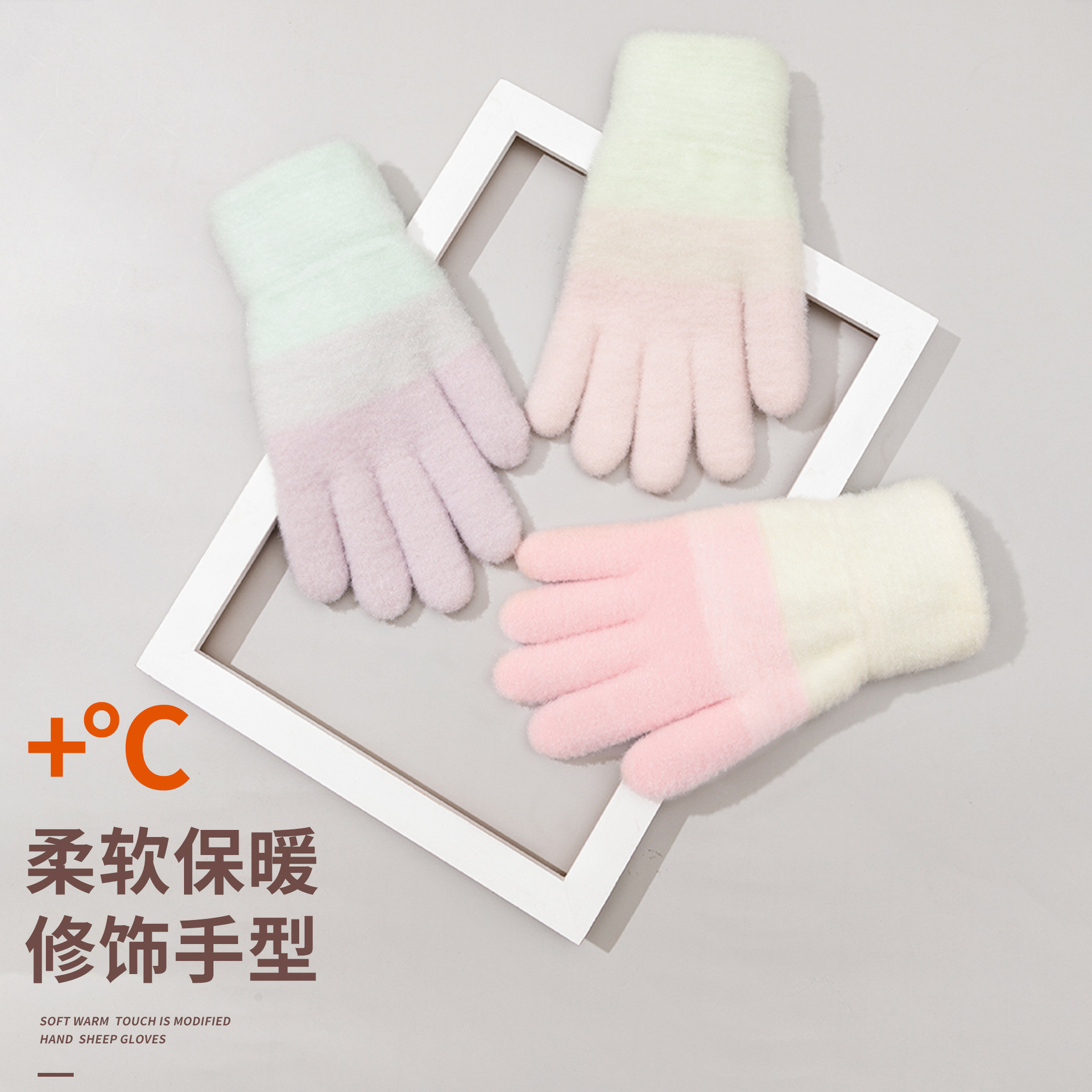 渐变色露指触屏手套冬季女学生五指针织加厚保暖防寒户外骑行手套