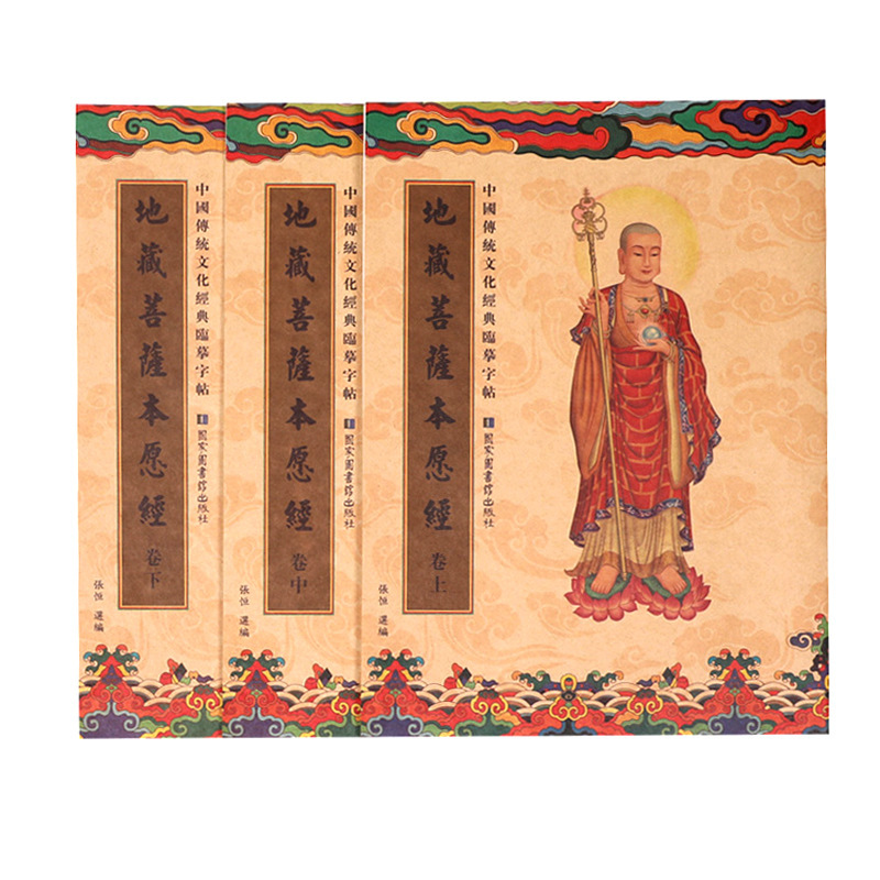 繁体字地蔵菩薩の本願は手本を模して、地蔵経の写本の上中下三冊の経書を書きます。