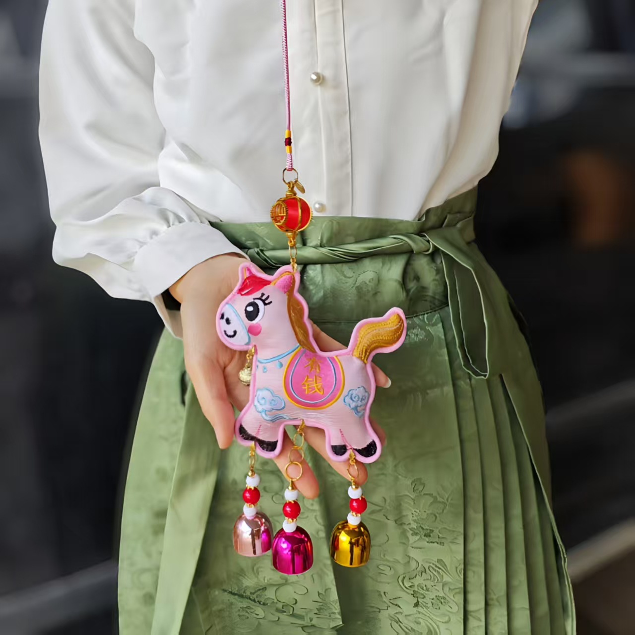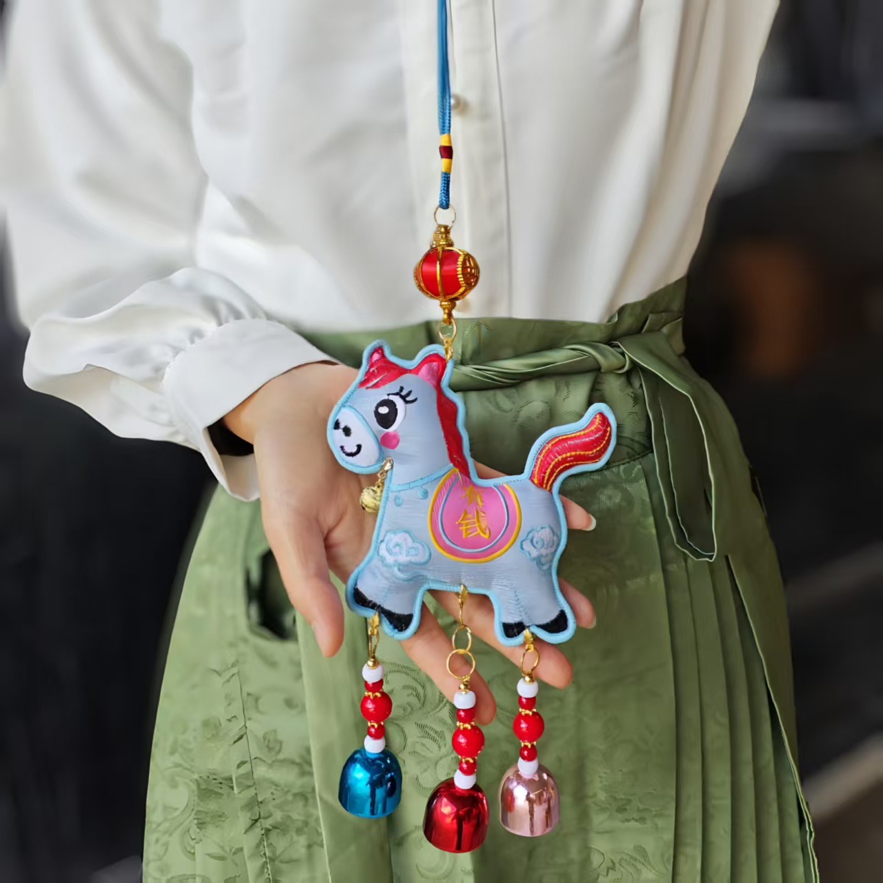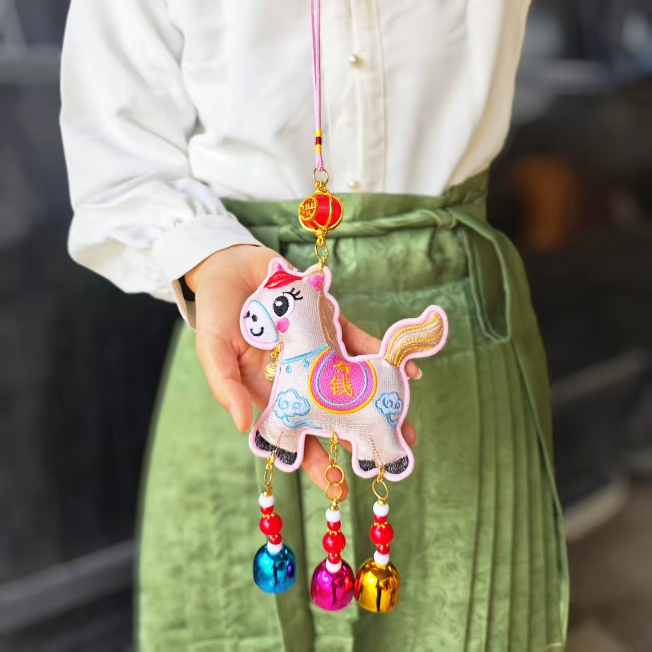 马年生肖创意香囊双面可爱马香包车载挂件铃铛刺绣福袋荷包锦囊
