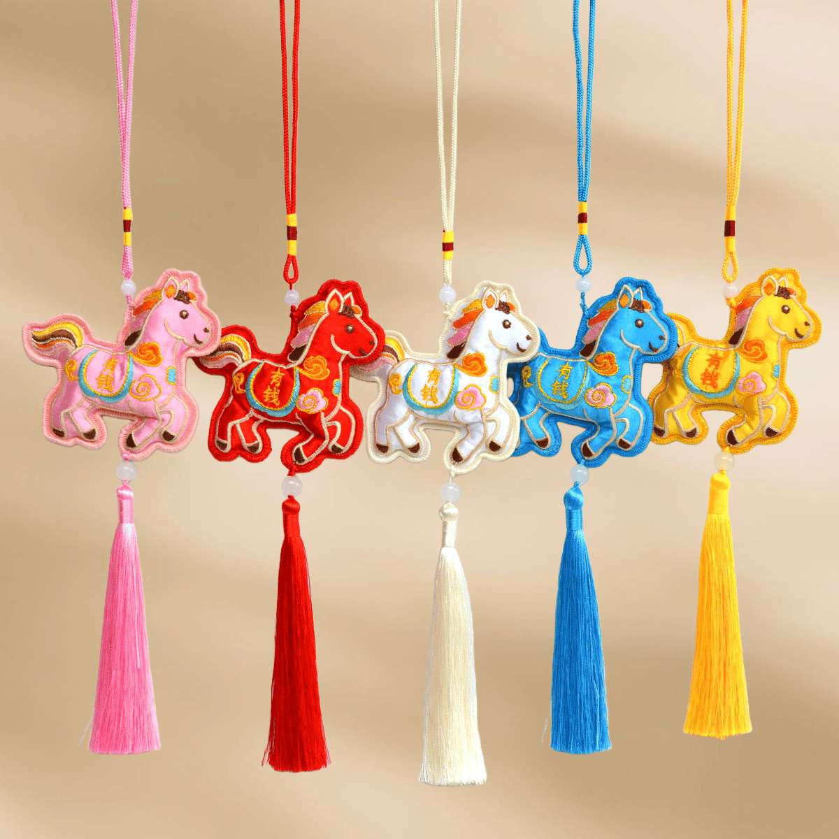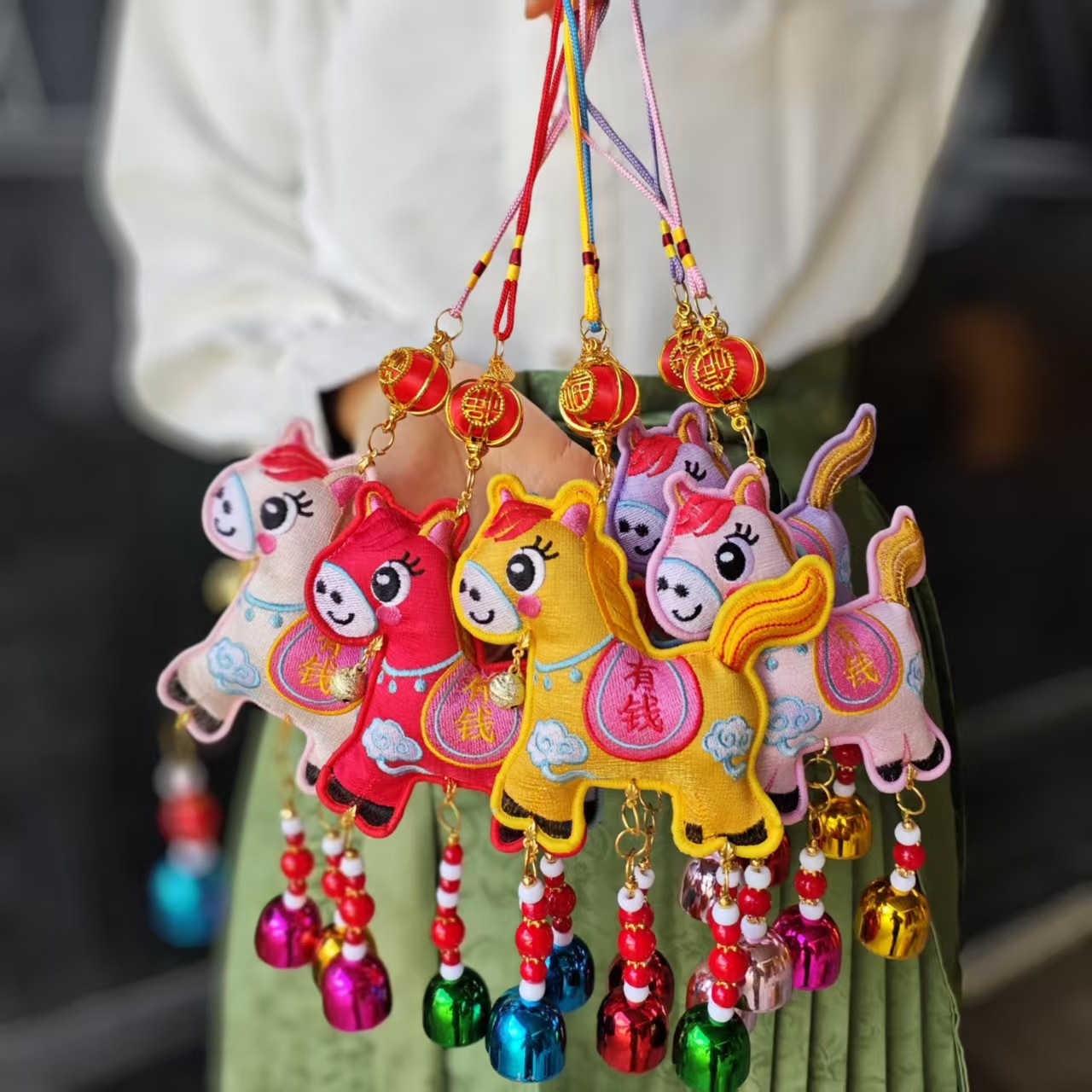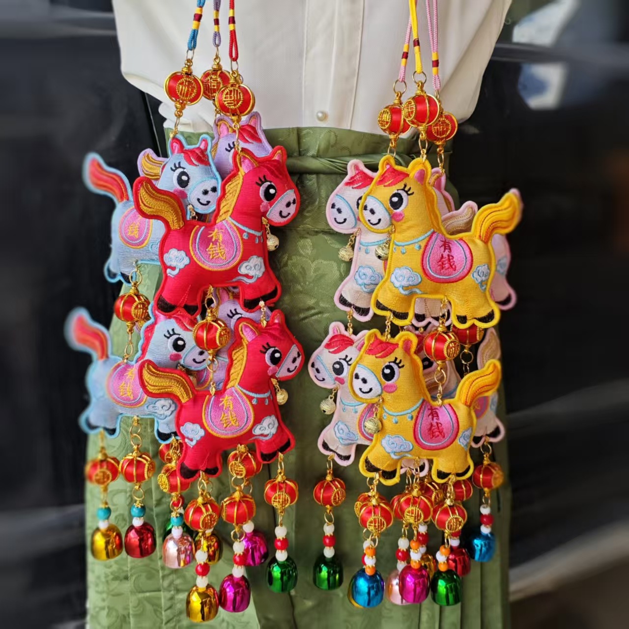 马年香包挂件双面刺绣新年流苏香囊春节装饰品生肖马吉祥物车挂饰