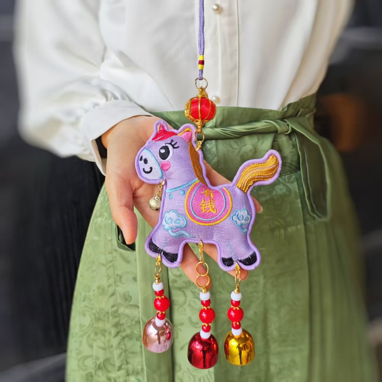 卡通刺绣小马香包挂件马上发财文创寺庙祈愿保平安福袋香囊礼品