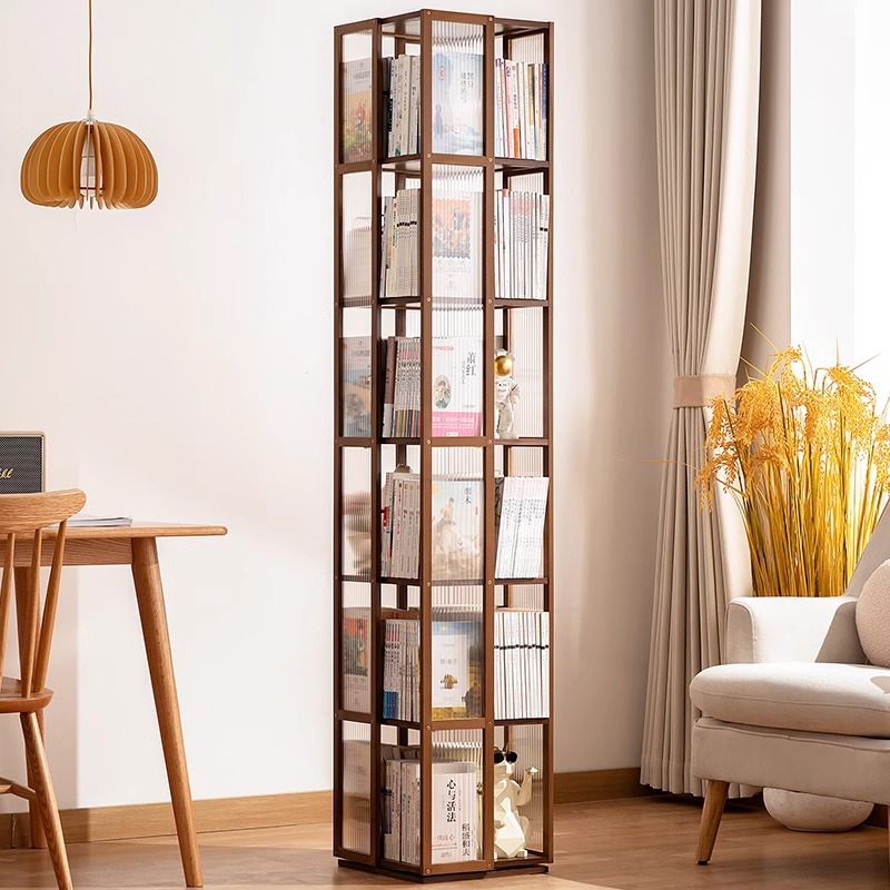 360度回転式本棚、フロアスタンド型収納ラック、一体型家庭用リビングルーム簡易本棚、収納ラック、軽奢で高級感のあるデザイン