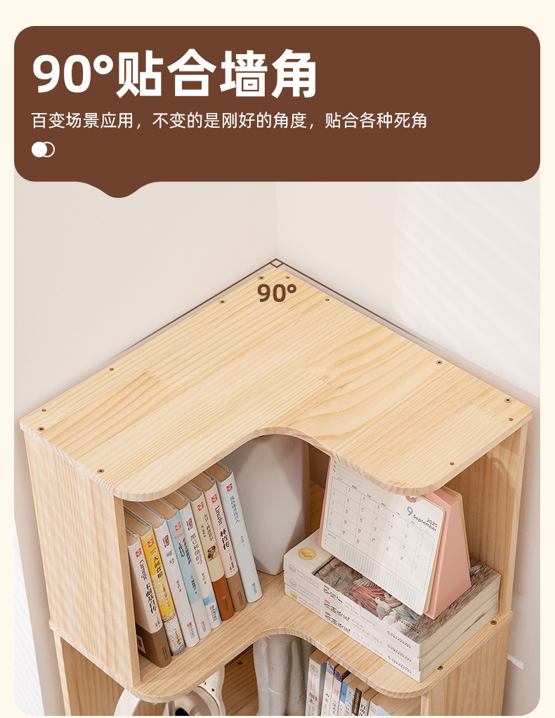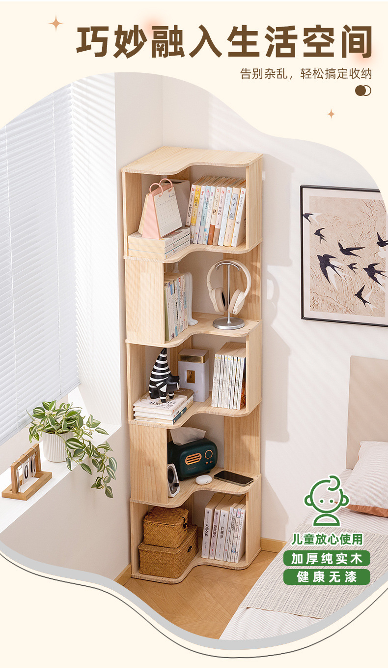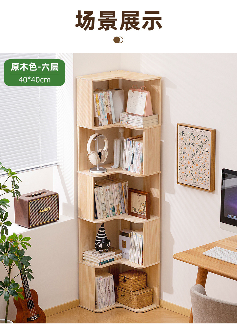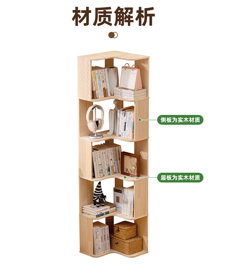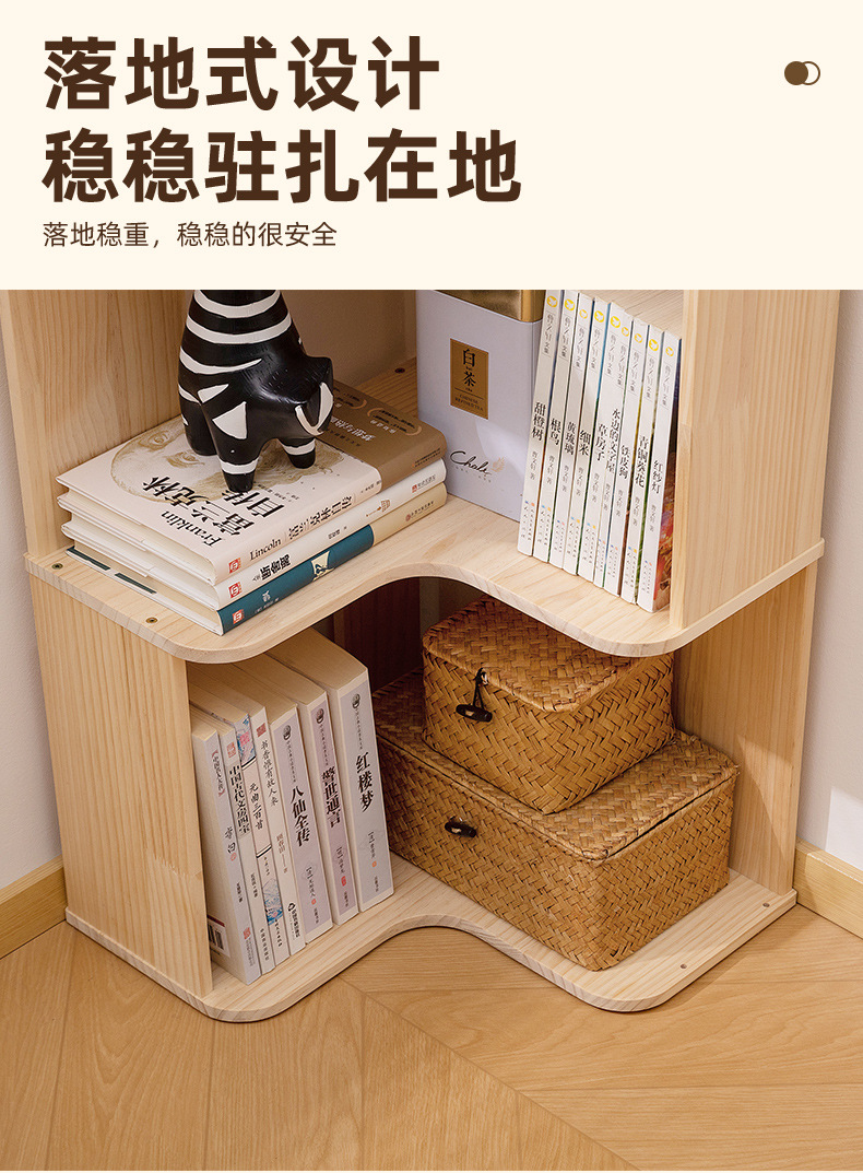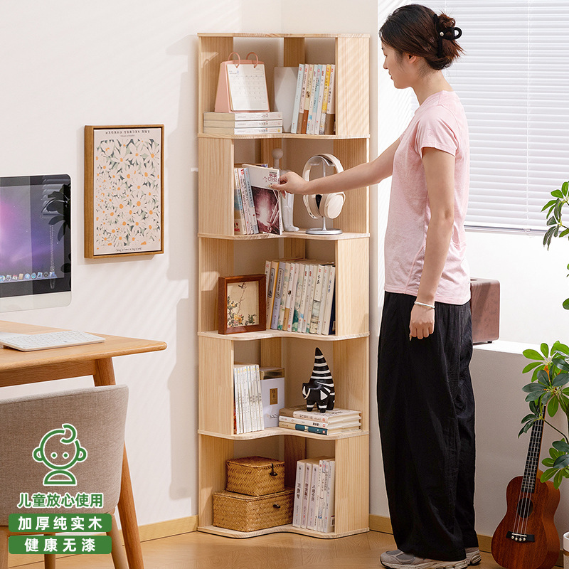 实木转角书架落地多层置物架小户型收纳格子柜家用客厅书柜严选