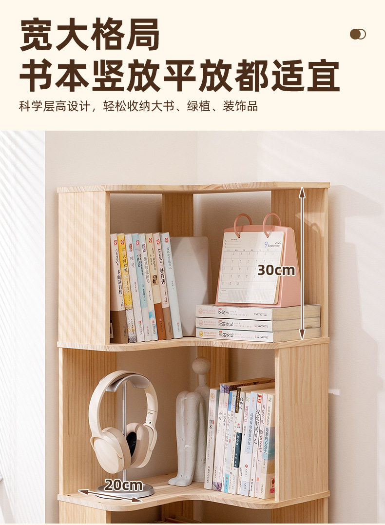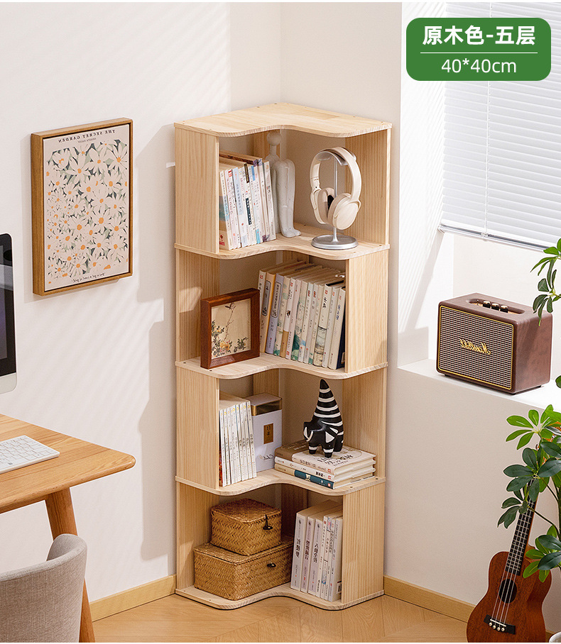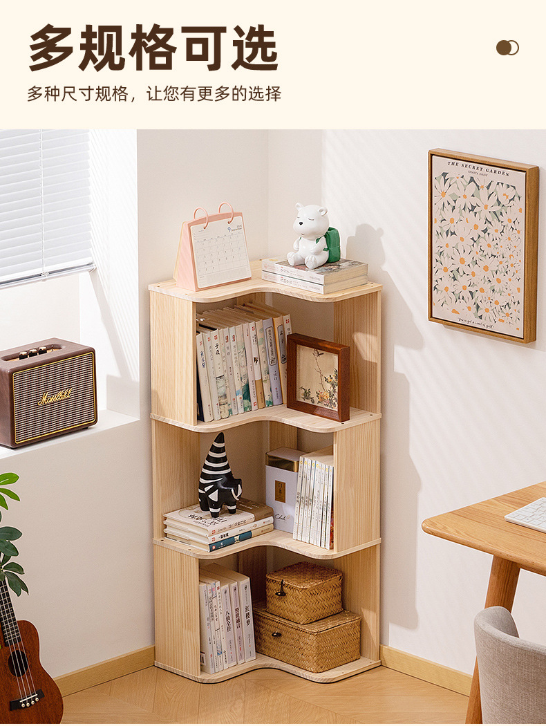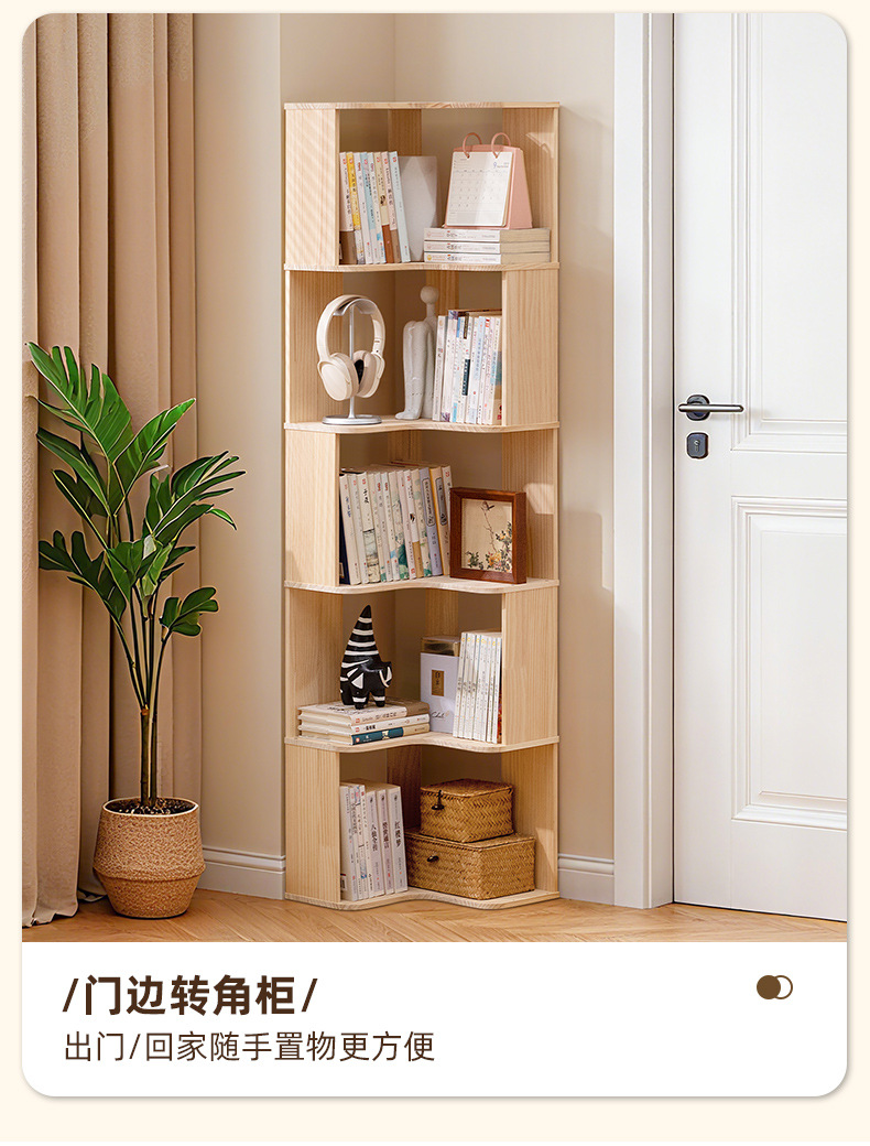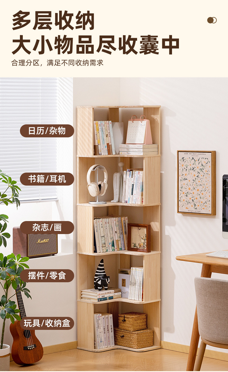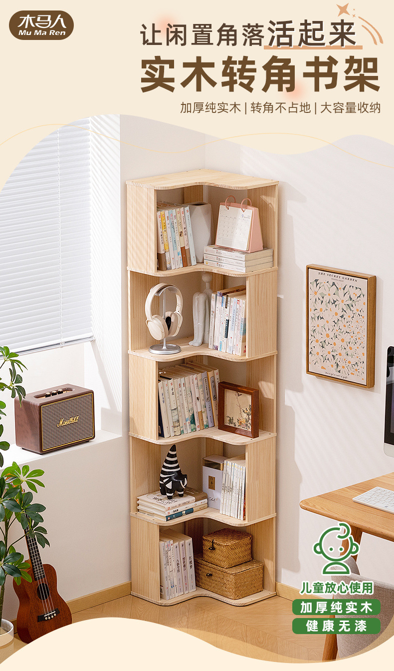 实木转角书架落地多层置物架小户型收纳格子柜家用客厅书柜严选