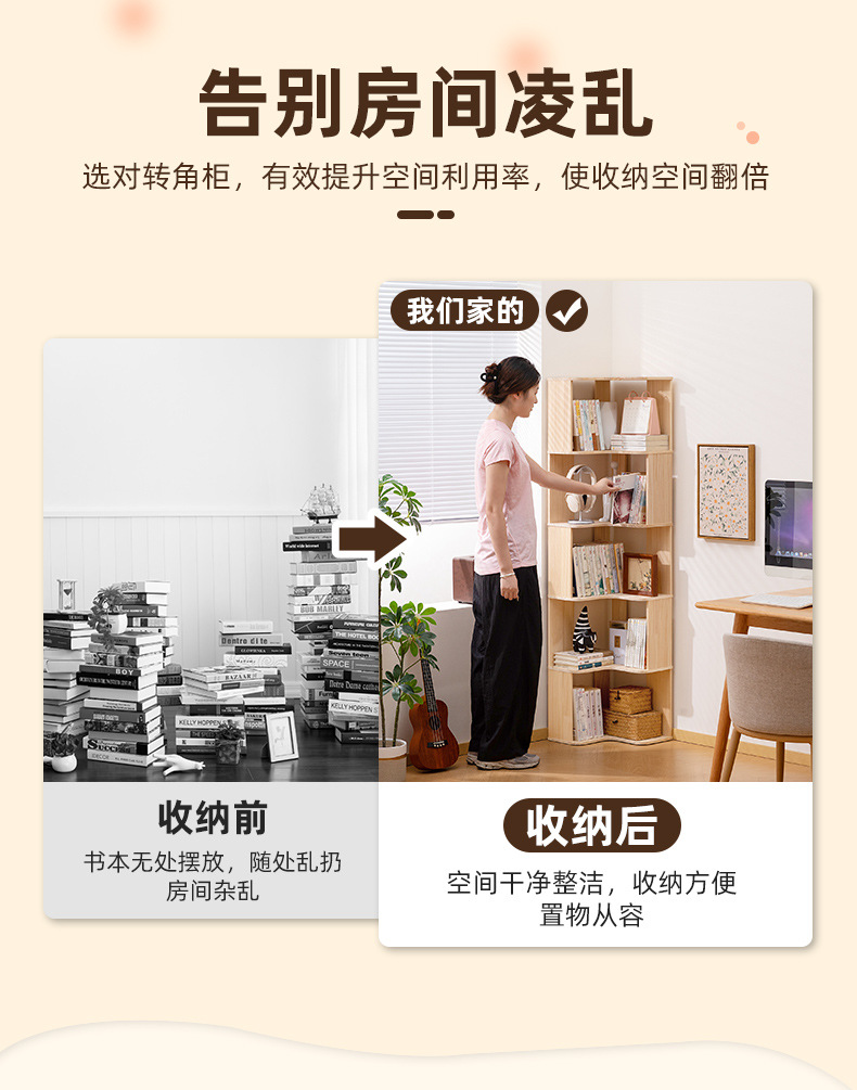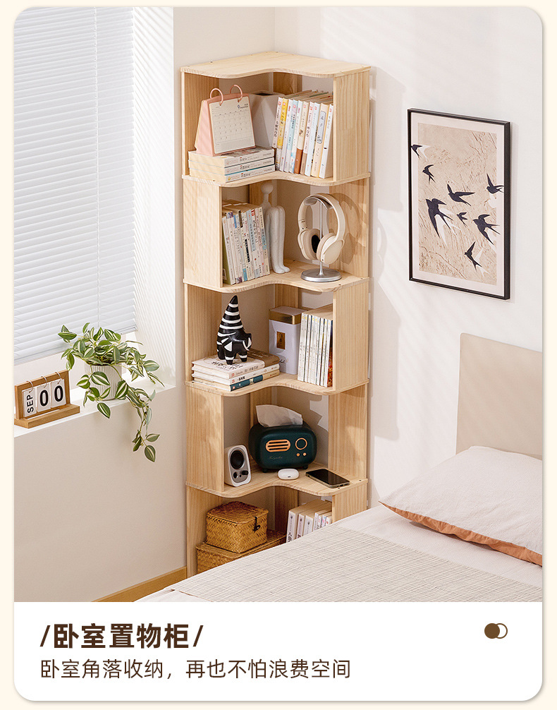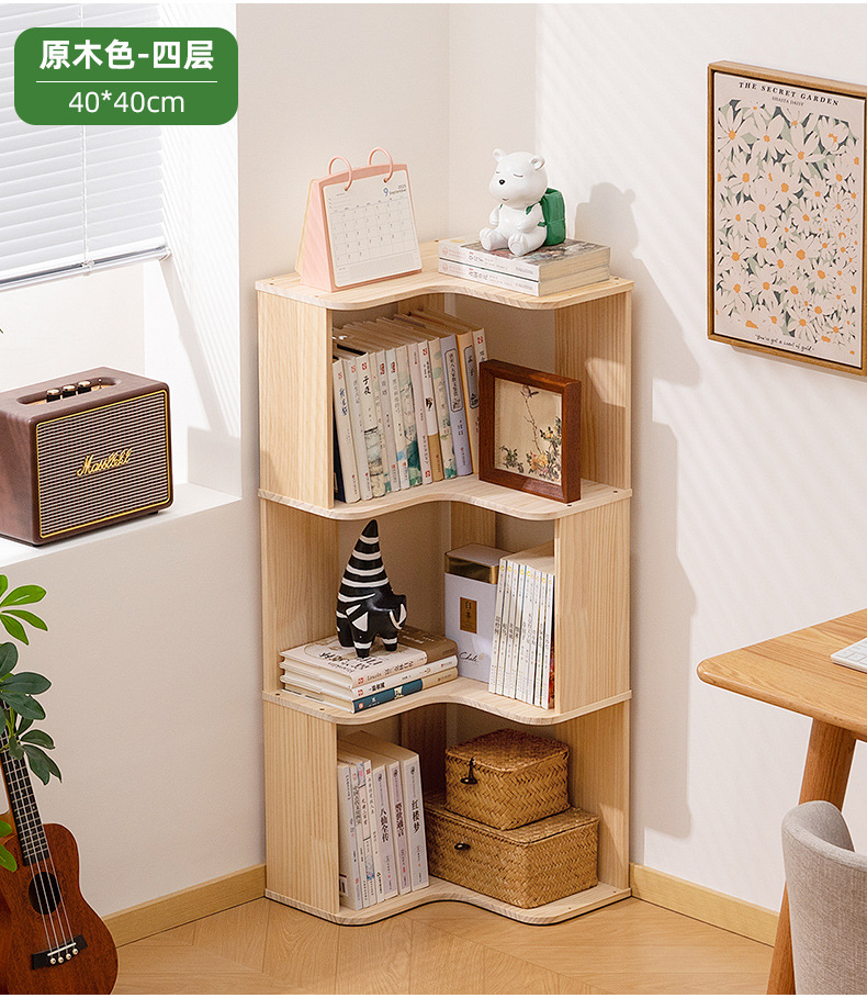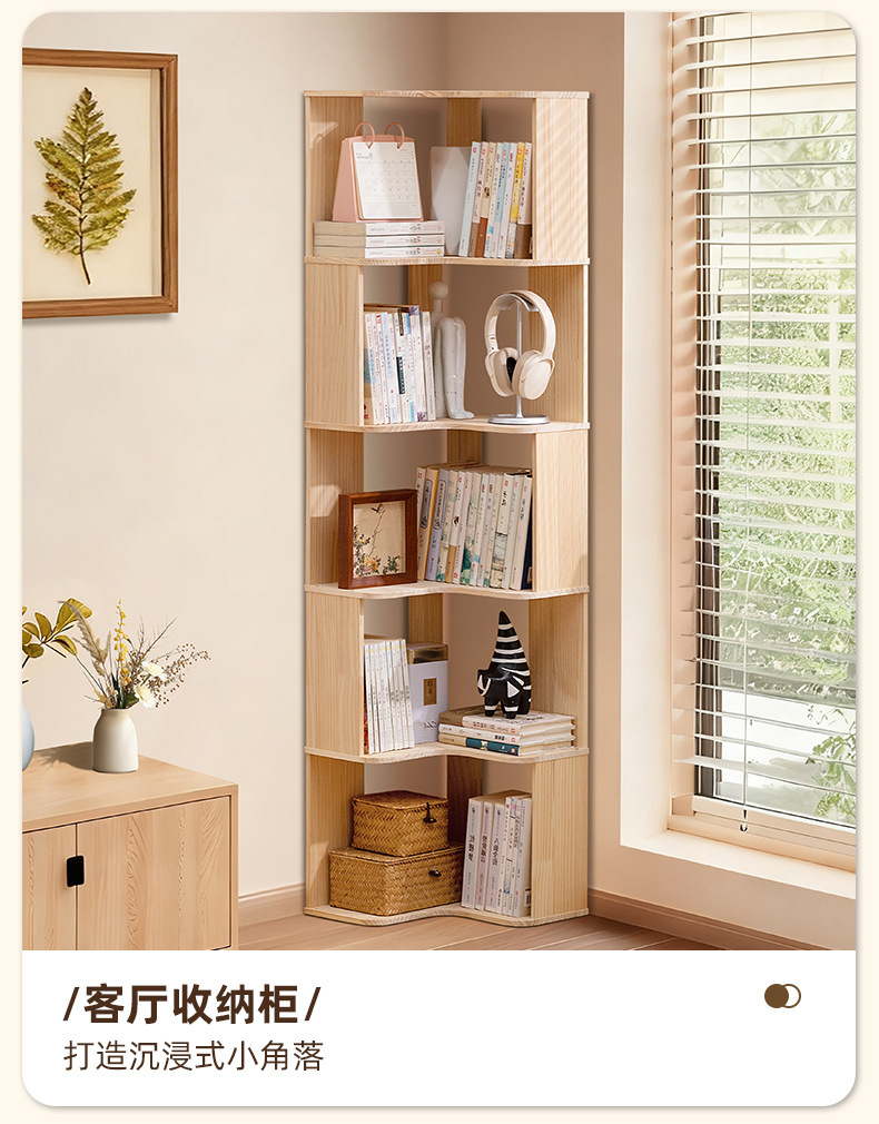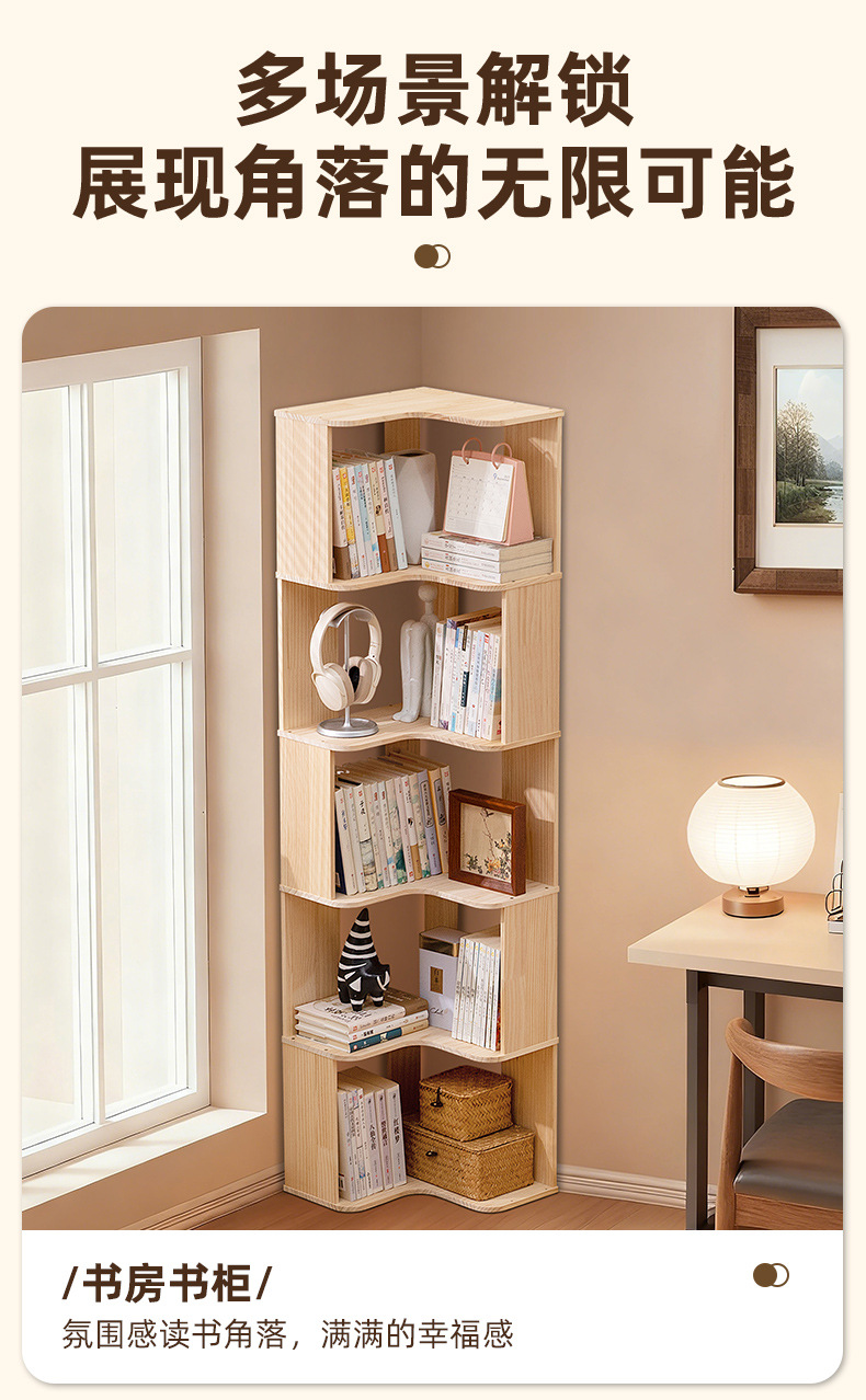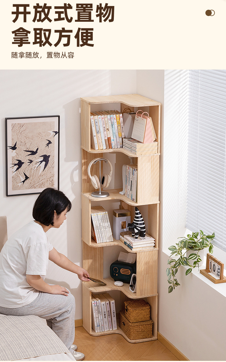 实木转角书架落地多层置物架小户型收纳格子柜家用客厅书柜严选