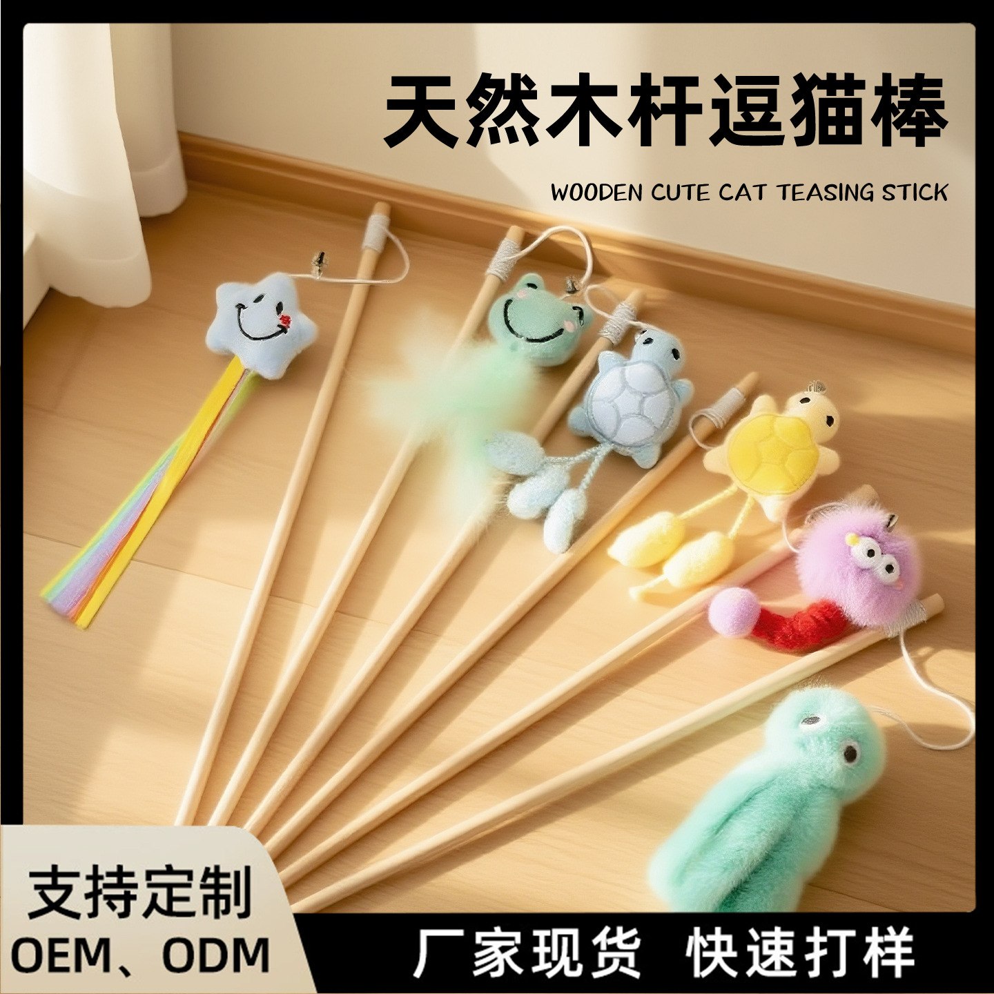 猫咪玩具原木杆逗猫棒自嗨逗猫神器小猫响铃萌趣逗猫棒耐抓耐咬