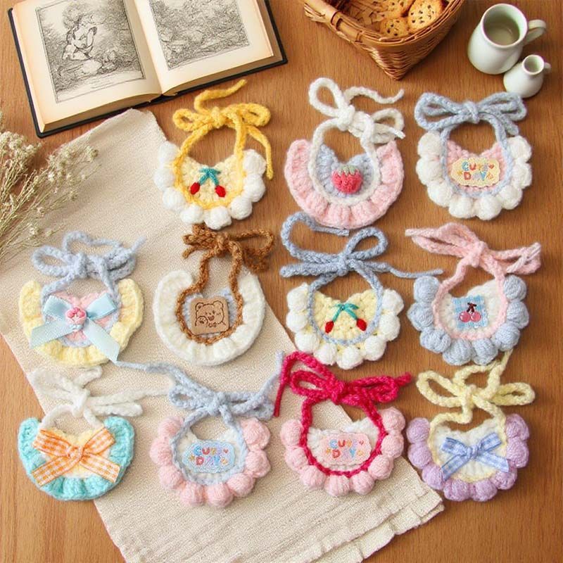 纯手工钩织mini小型宠物口水巾小奶猫毛绒围兜西高地百搭卡通围巾