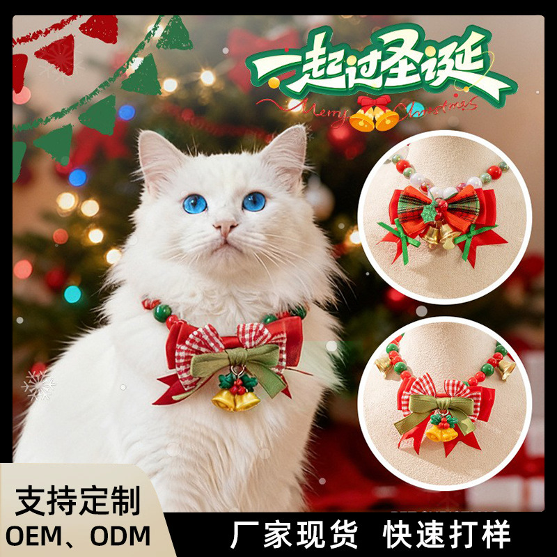 圣诞宠物项链ins猫咪项圈铃铛发声蝴蝶结猫咪配饰猫项链跨境批发