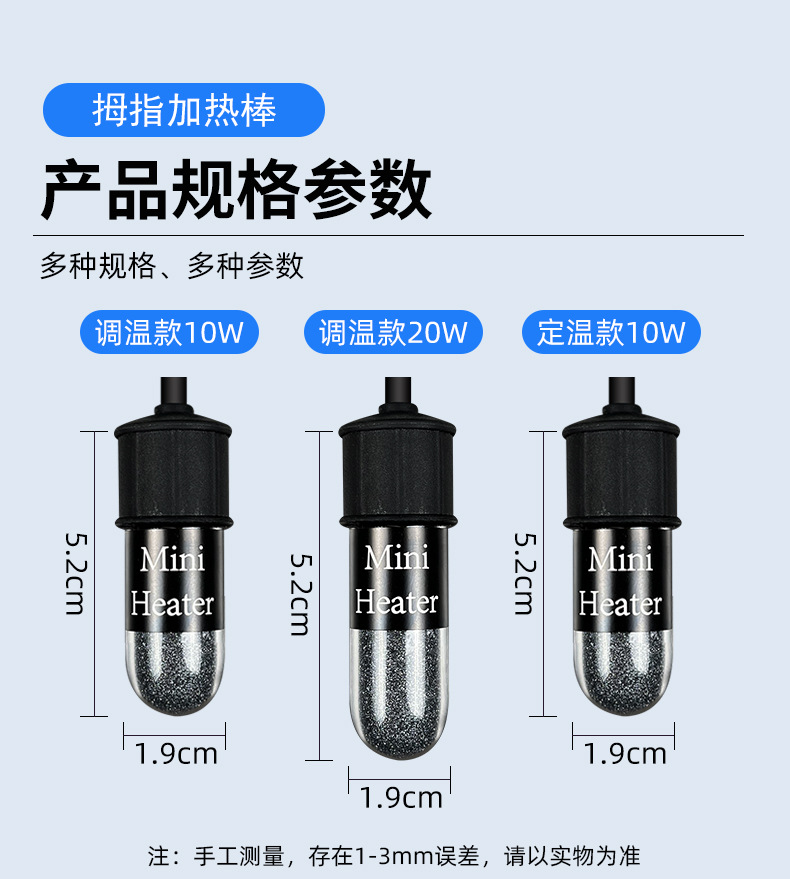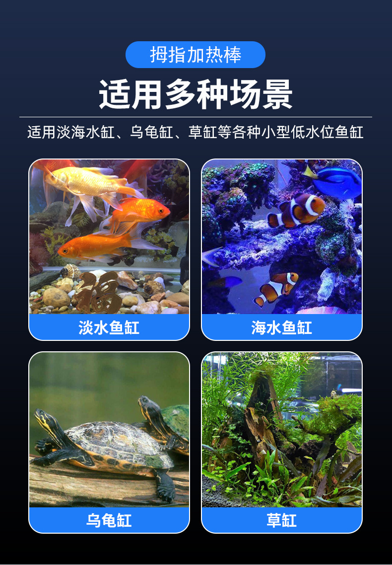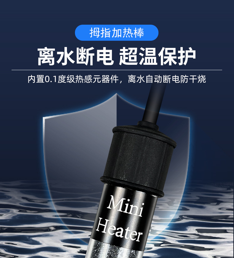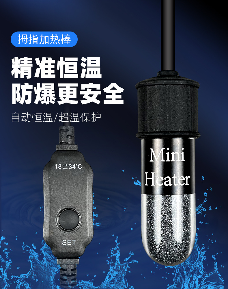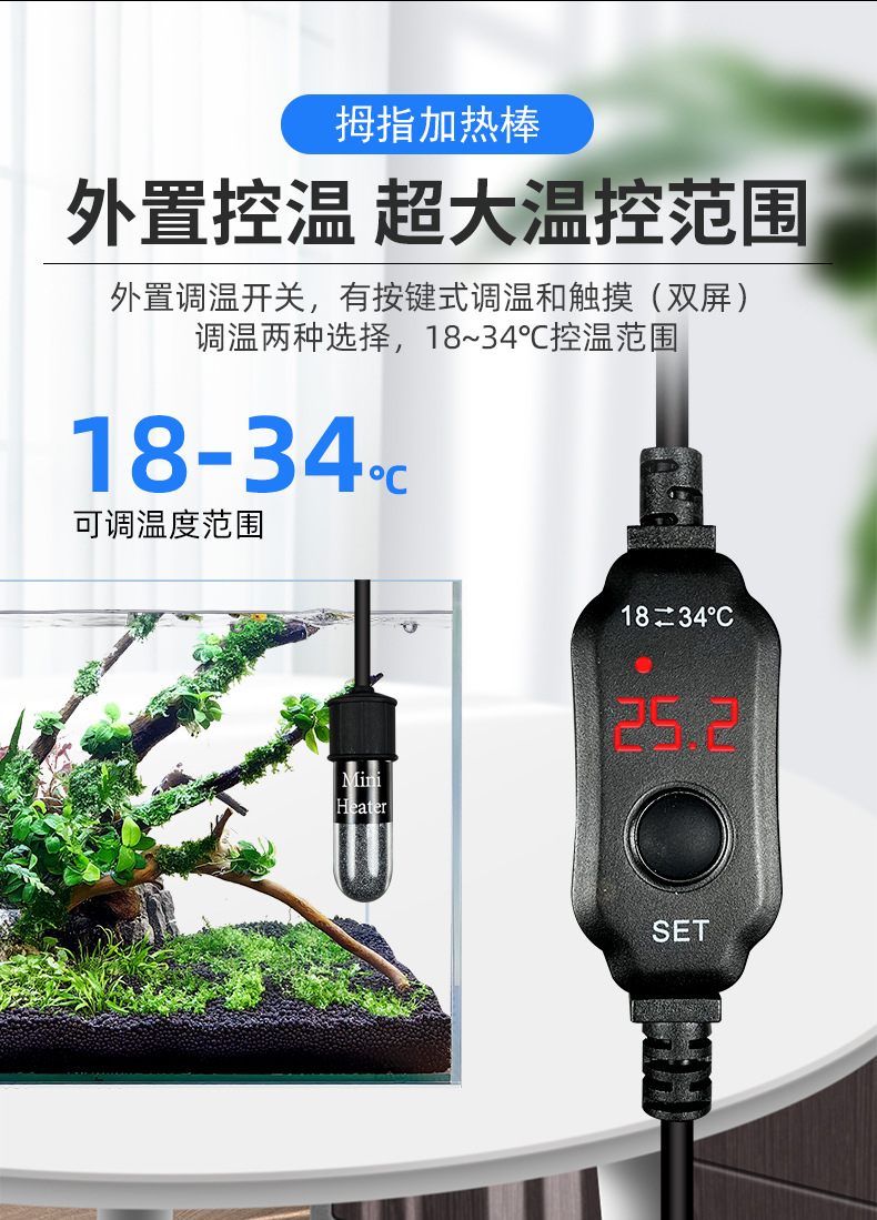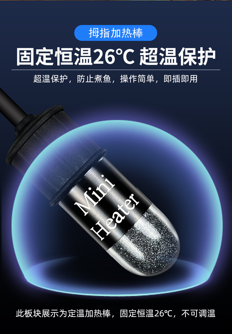 拇指石英可控温斗鱼缸迷你加热器电子加热棒自动数显超短恒温小型