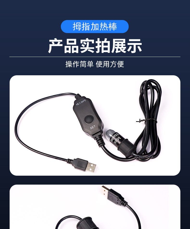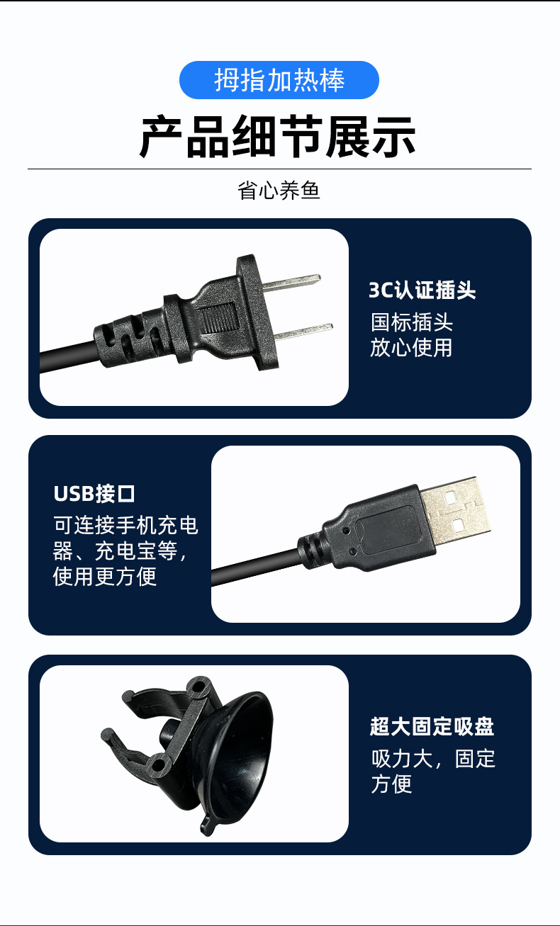 USB微缸斗鱼缸加热棒低水位龟缸迷你石英加热器加温棒鱼缸控温