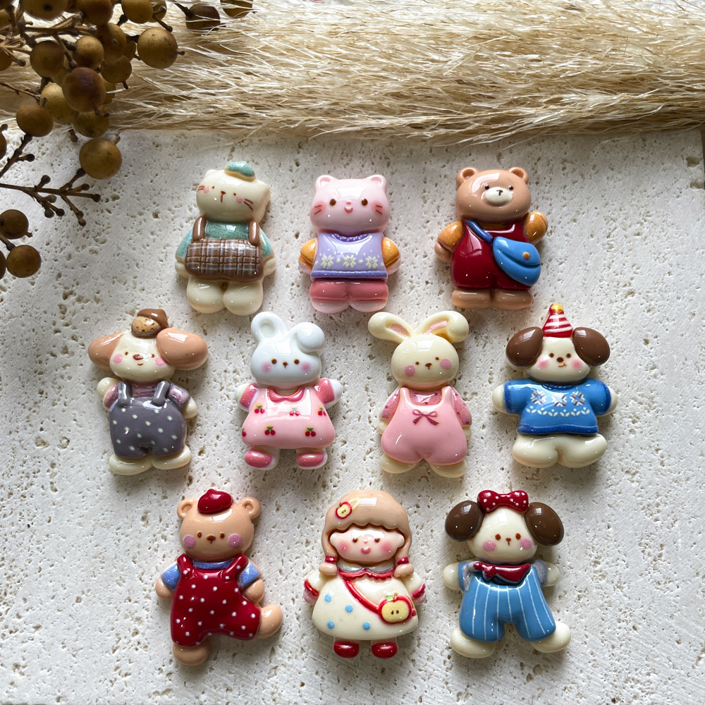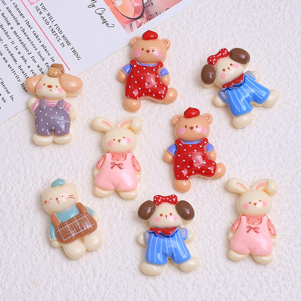 可爱背带裤动物卡通手工diy奶油胶树脂小配件洞洞鞋扣饰品材料包