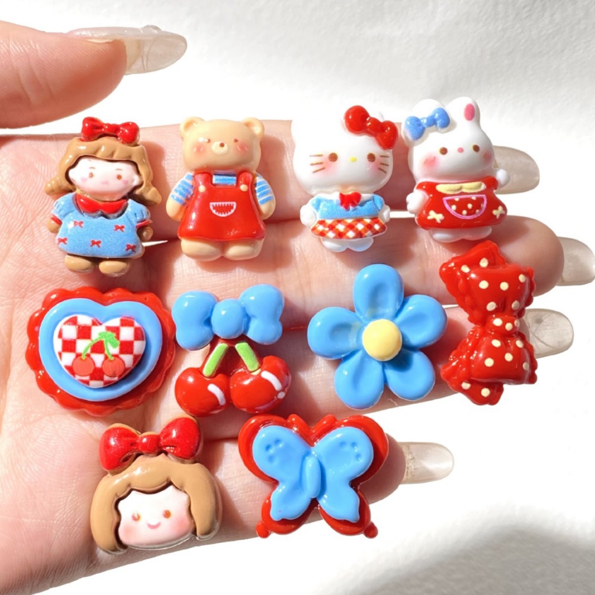 可爱红蓝色女孩树脂配件diy自制发夹头绳手机壳钥匙扣鞋花装饰