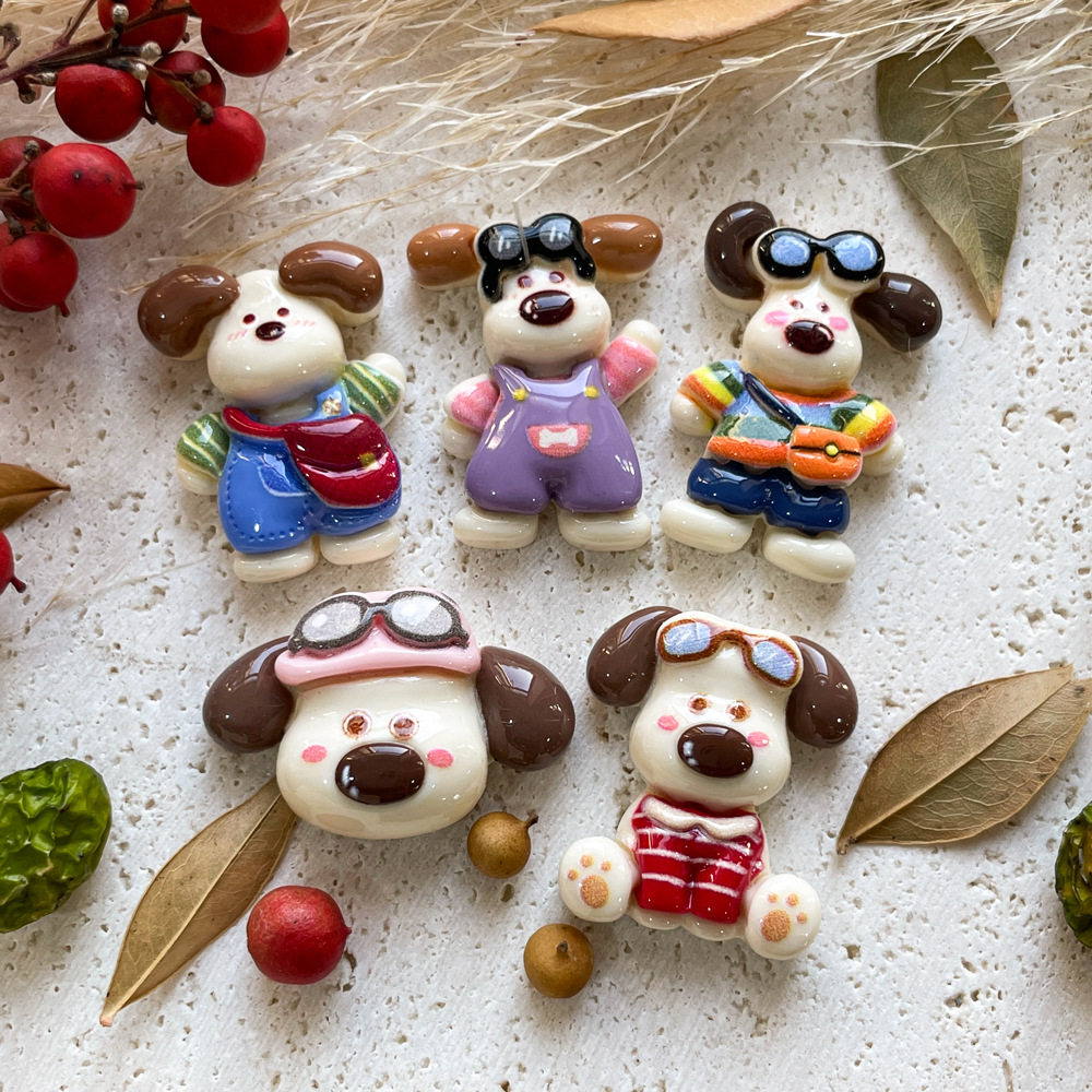 卡通眼镜小狗树脂配件diy奶油胶手机壳冰箱贴发夹头饰品配件批发