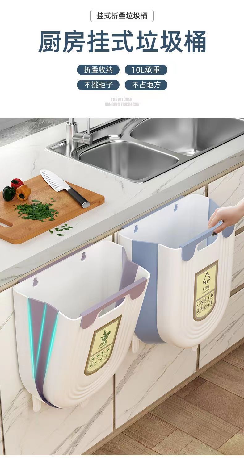 厨房垃圾桶挂式家用塑料分类可折叠橱柜门壁挂卫生间厕所收纳纸篓