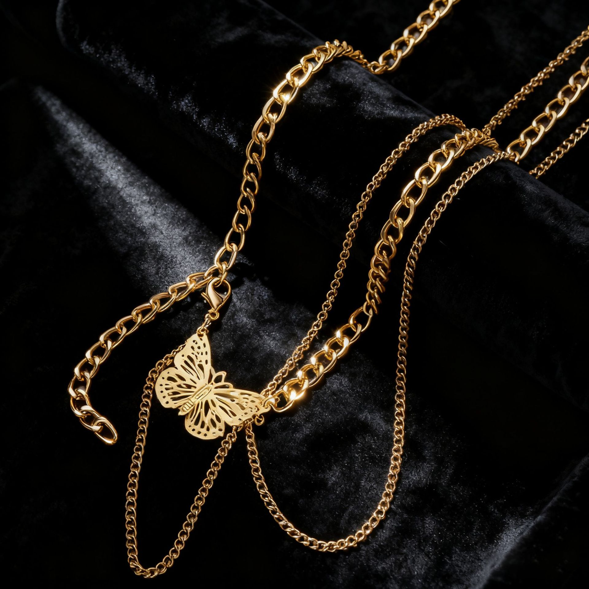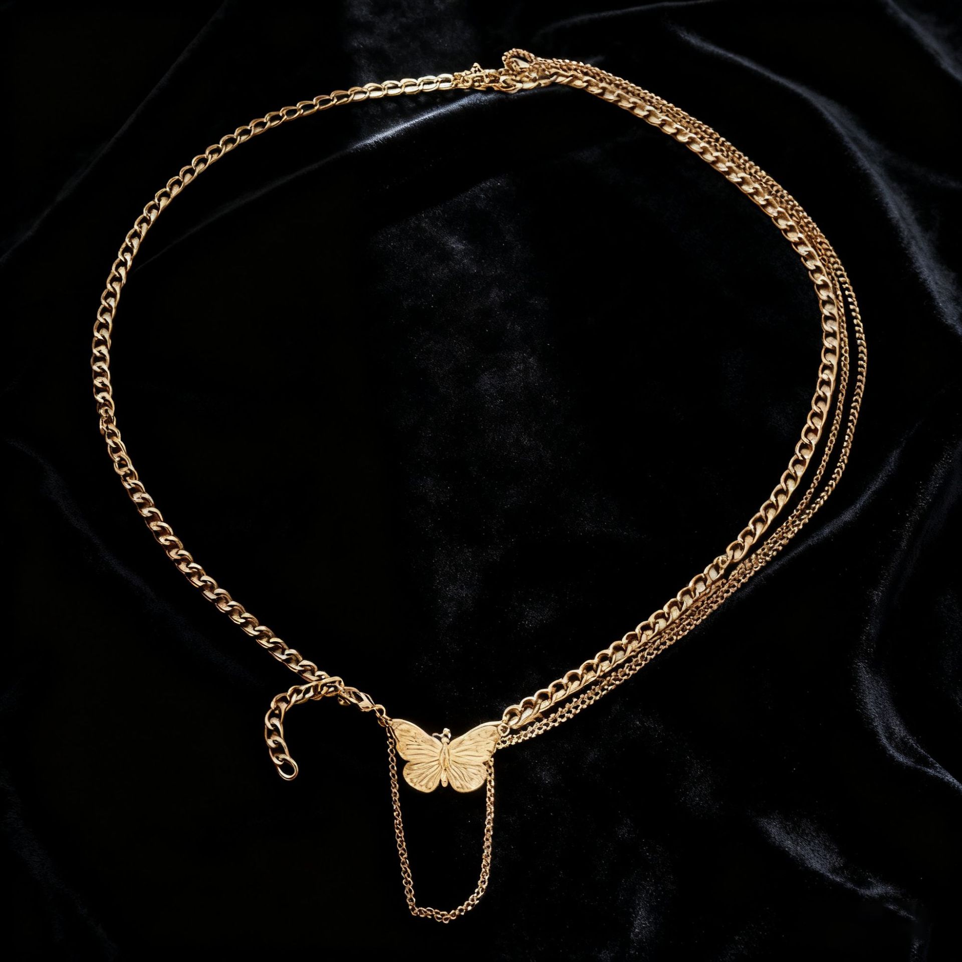 跨境欧美蝴蝶金属腰链多层链条时尚饰品女士金流苏个性复古身体链