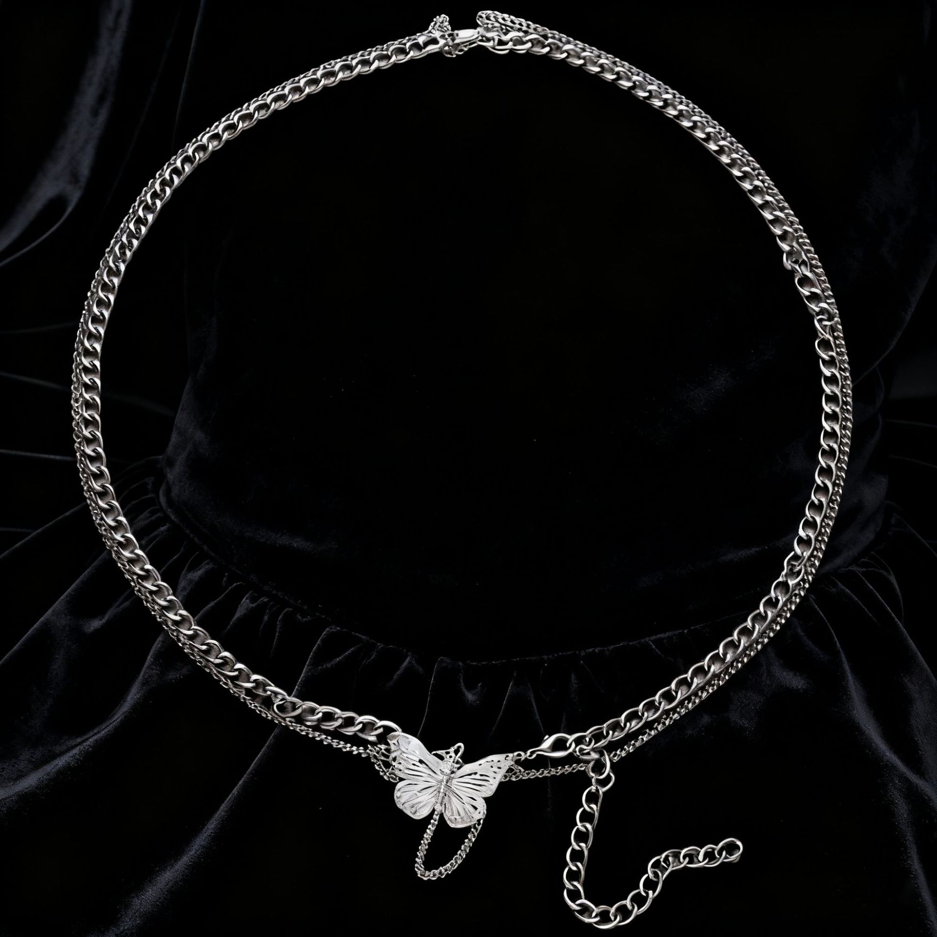 跨境金属蝴蝶腰链银色珍珠带链条女高级感配裙子百搭装饰欧美复古