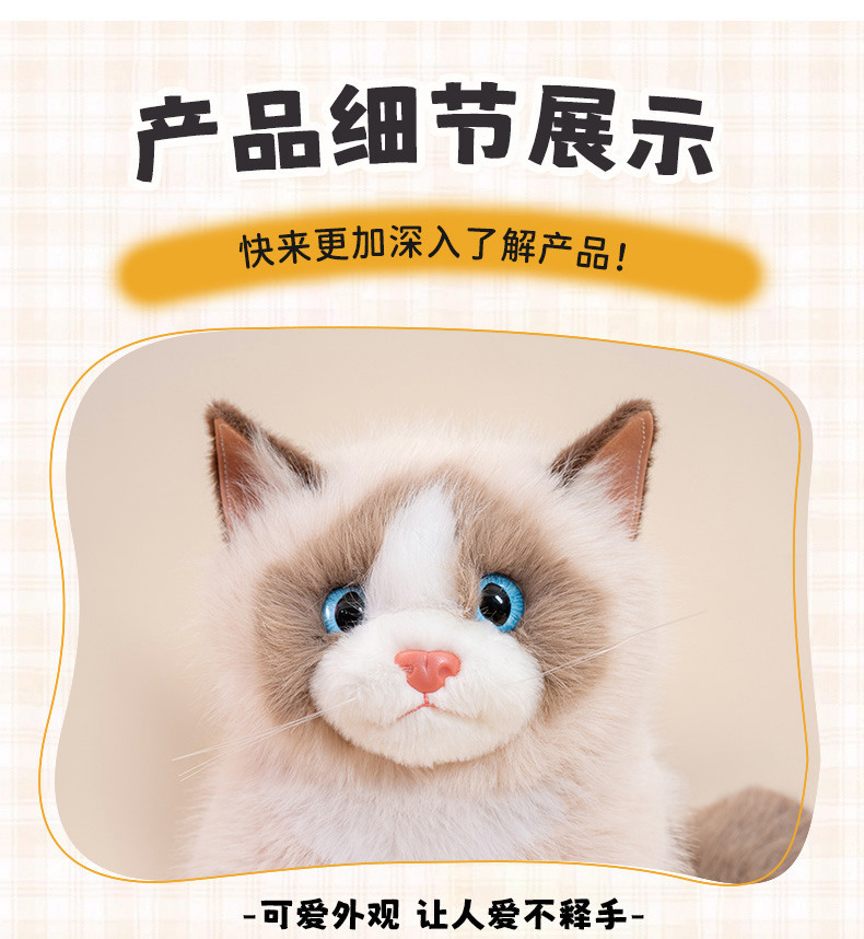 模擬ラグドール猫人形猫人形ぬいぐるみかわいいペット子猫布人形女の子ギフト