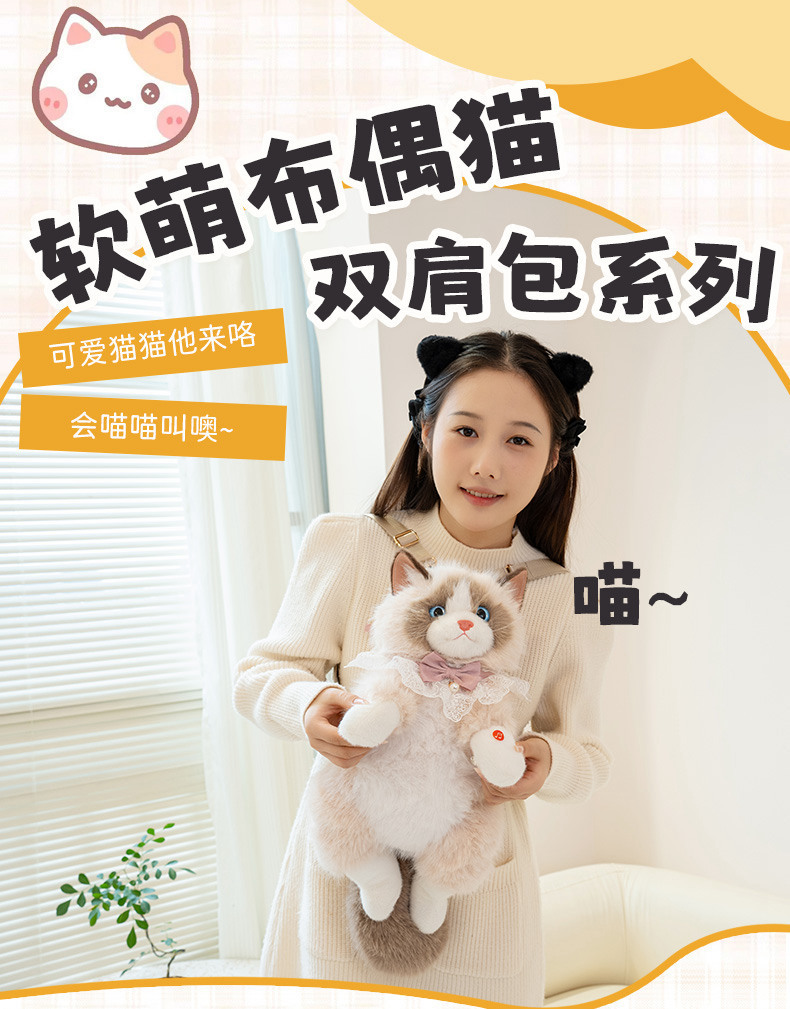 新款仿真猫咪会猫叫布偶猫公仔双肩包安抚玩偶毛绒玩具女生日礼物