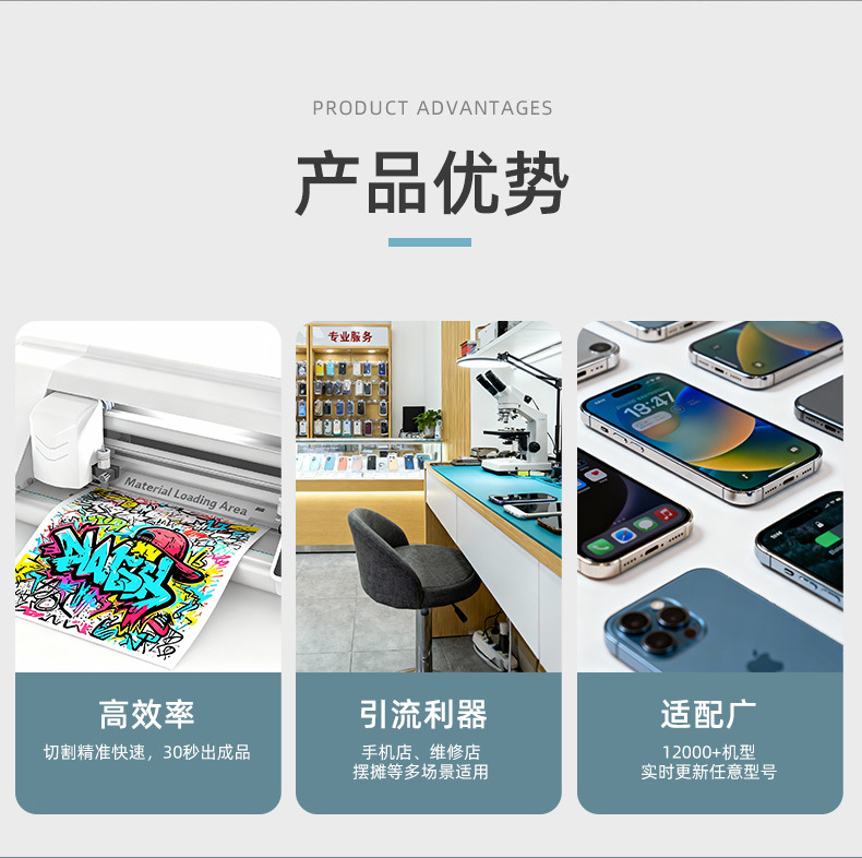 智能手机切膜机 防窥膜/水凝膜/防爆膜/背膜切割 可贴曲面不翘边