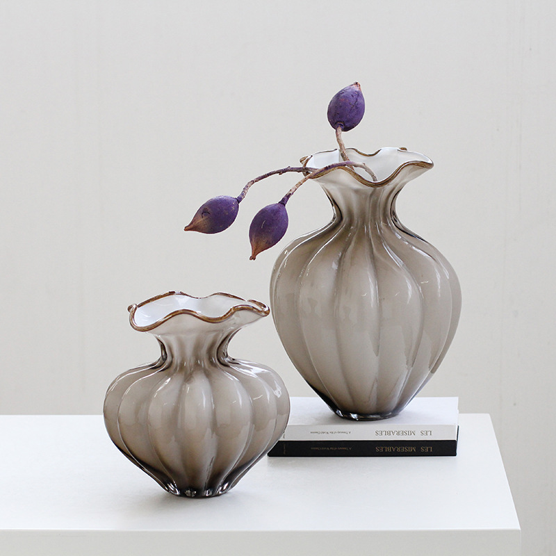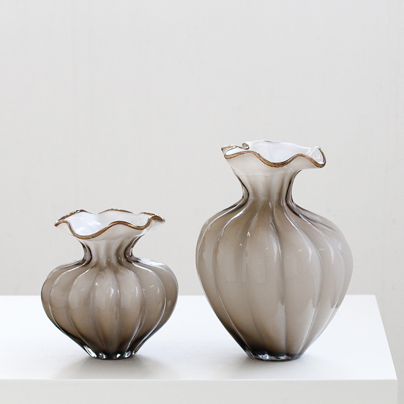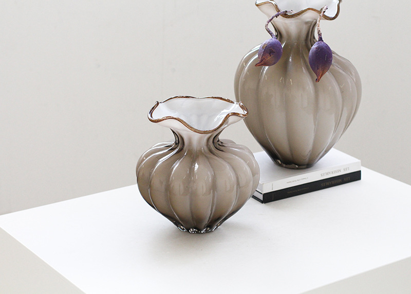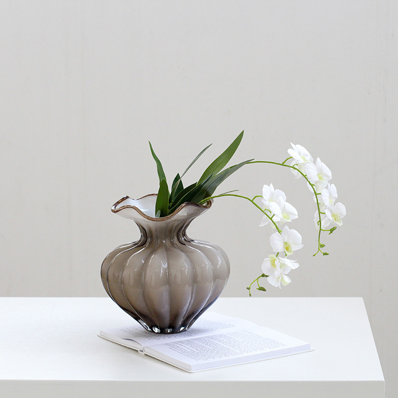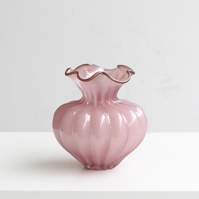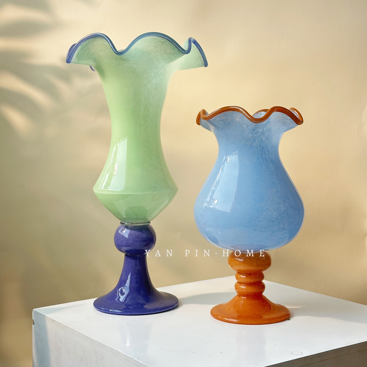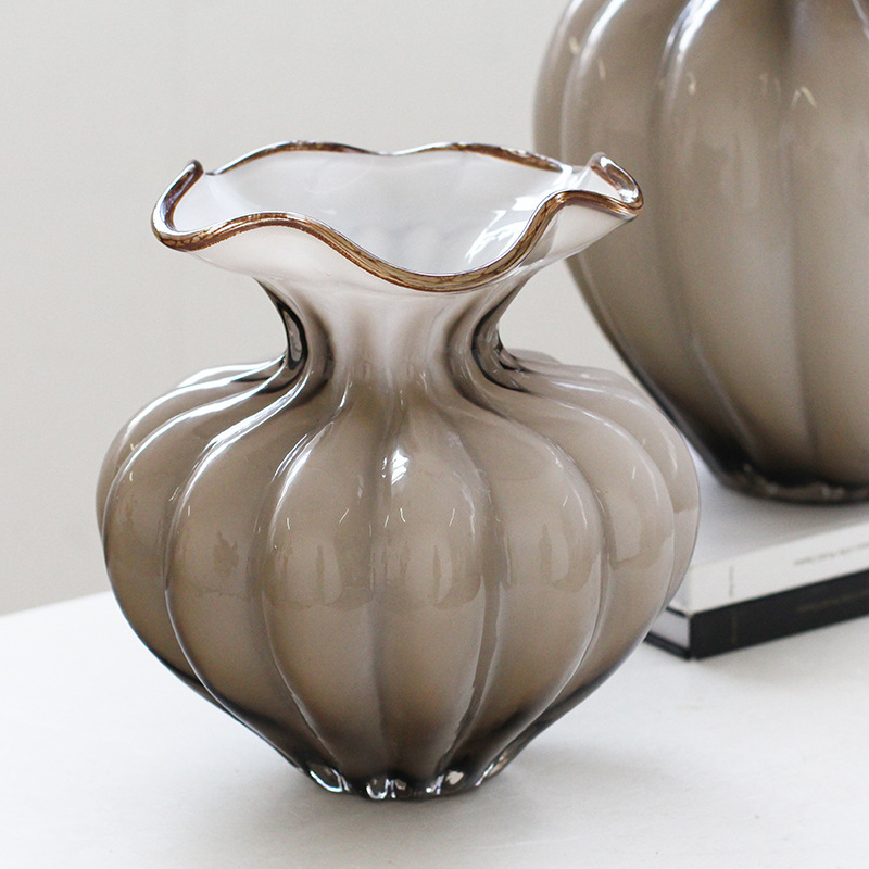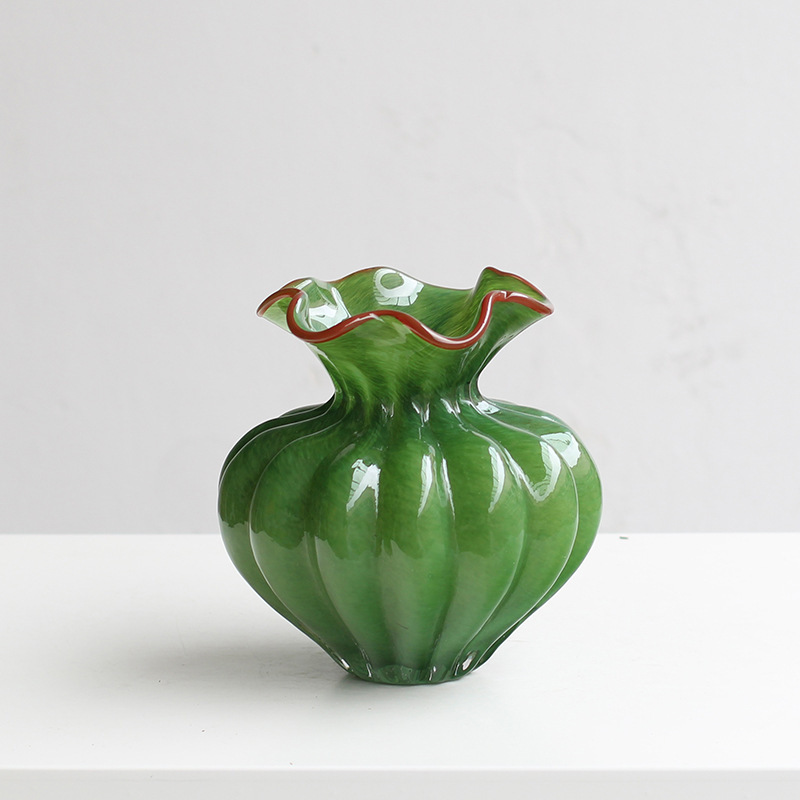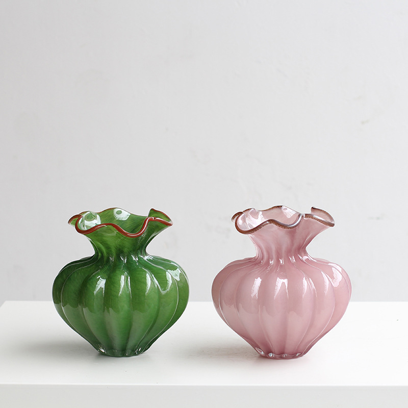 北欧手工波浪口花边糖果色南瓜琉璃花瓶高级感样板间客厅家居花瓶